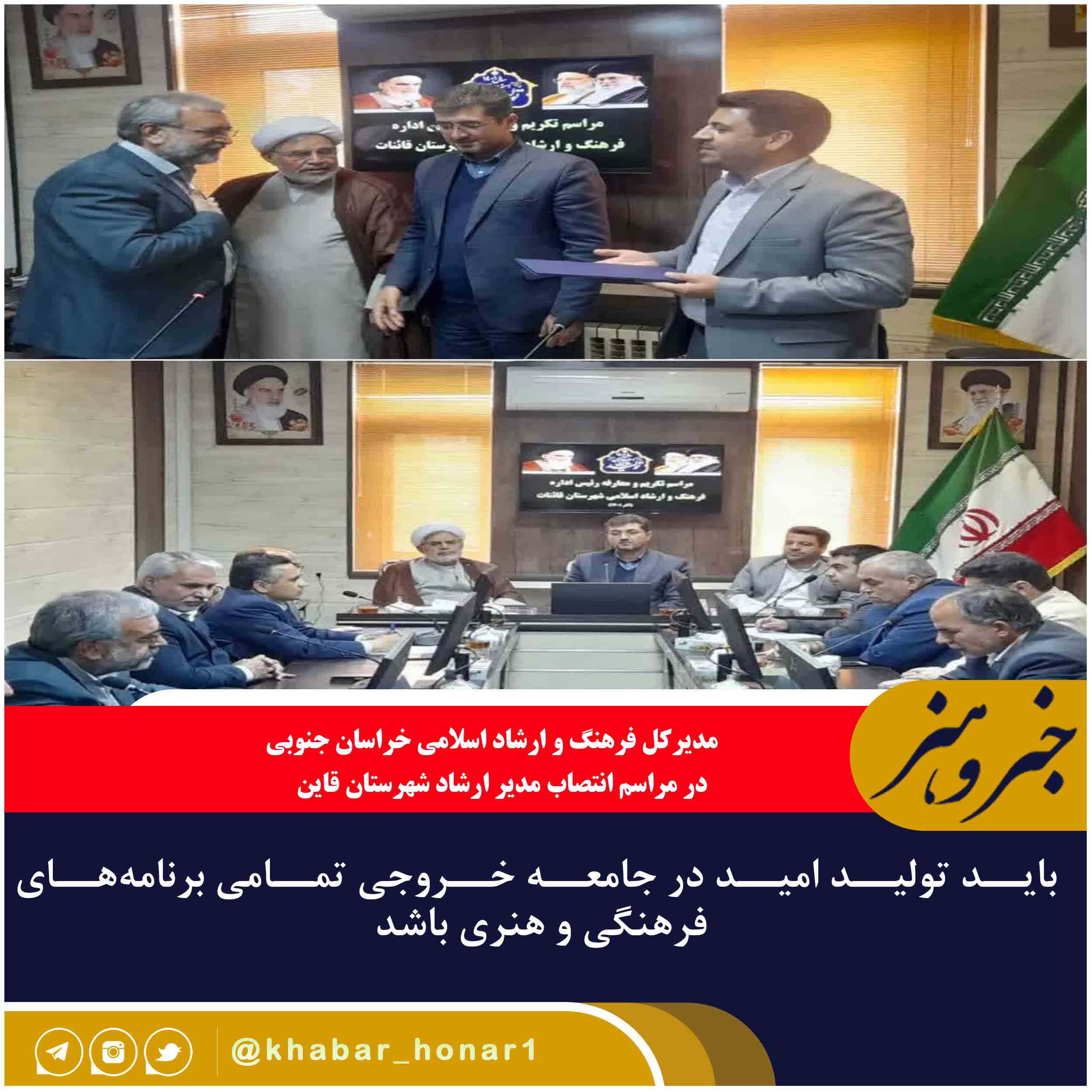 فرخنده با اشاره به گستردگی وظایف فرهنگ و ارشاد اسلامی، گفت: باید تولید امید در جامعه خروجی تمامی برنامههای فرهنگی و هنری باشد و با توجه به سیاست دولت سیزدهم، هم افزایی دستگاههای فرهنگی در این خصوص مورد توجه ویژه است.