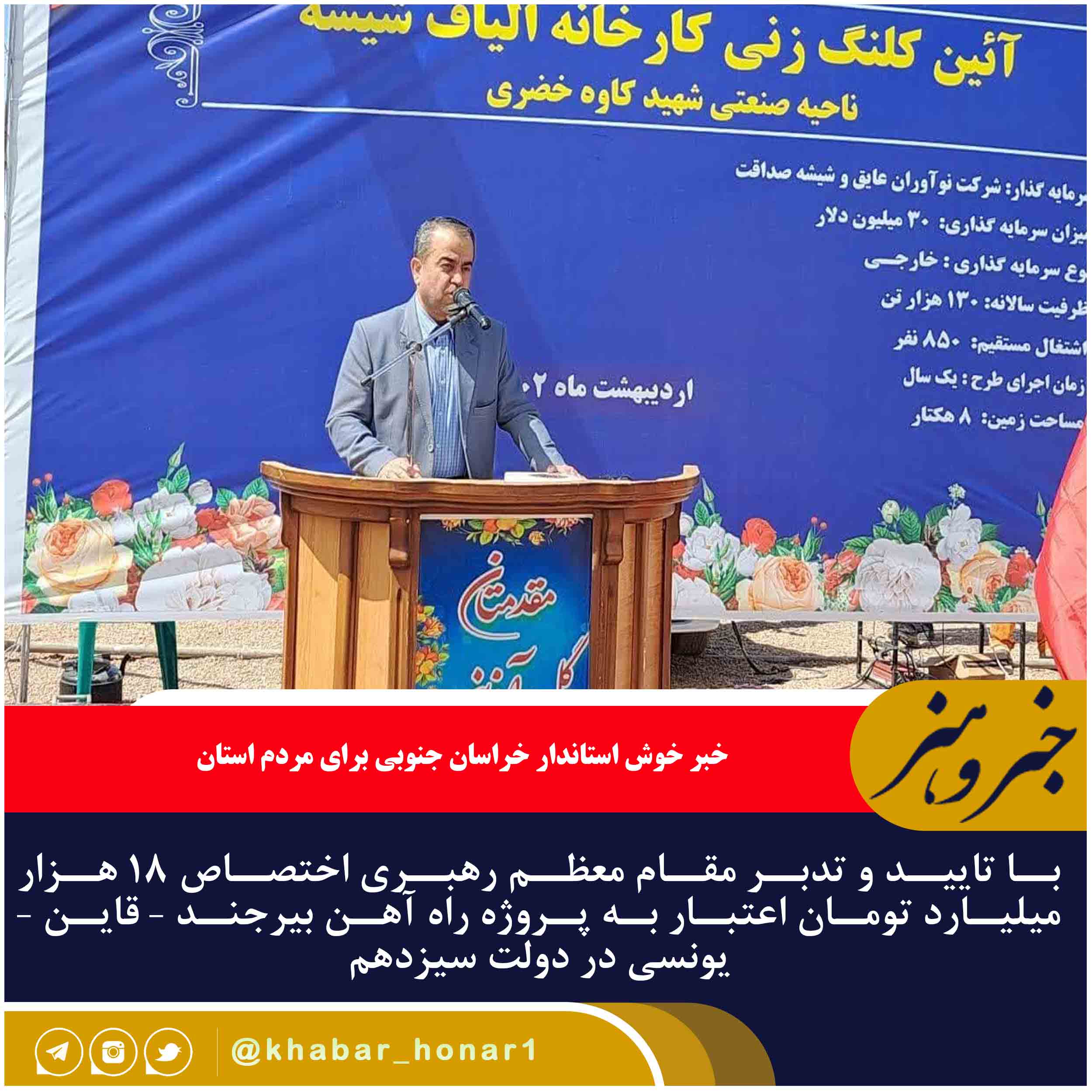 ، جواد قناعت در مراسم کلنگ زنی کارخانه الیاف شیشه در ناحیه صنعتی خضری دشت بیاض اظهار داشت: راه آهن بیرجند – قاین – یونسی جزو مصوبات سفر رئیس جمهور به خراسان جنوبی بود اما این طرح مهم یکسری مشکلات فنی داشت که با پیگیریهای صورت گرفته حل شد.