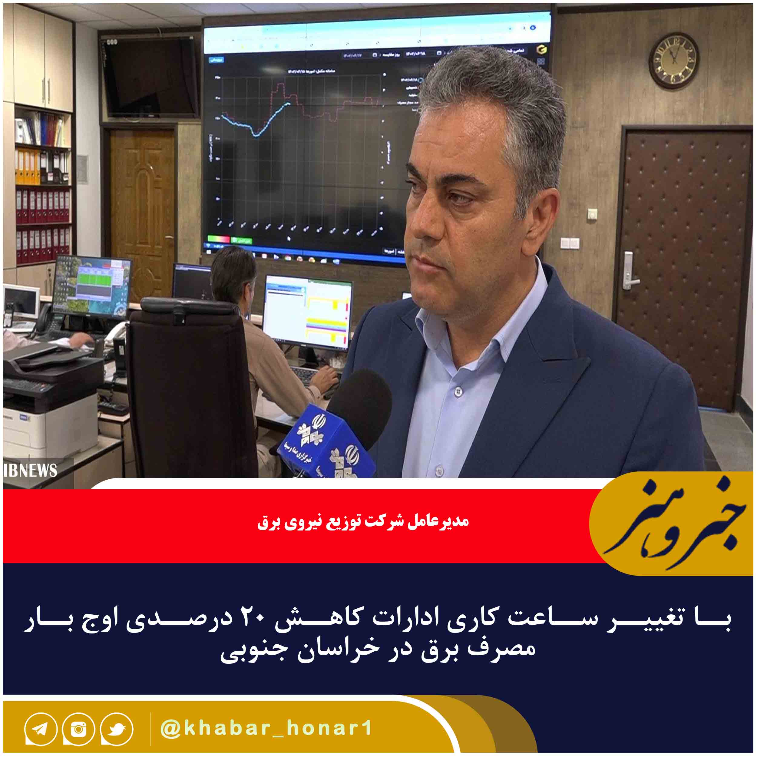 تغییر ساعت کار ادارات در تابستان امسال، اوج بار مصرف برق را در خراسان جنوبی، ۲۰ درصد کاهش داد.