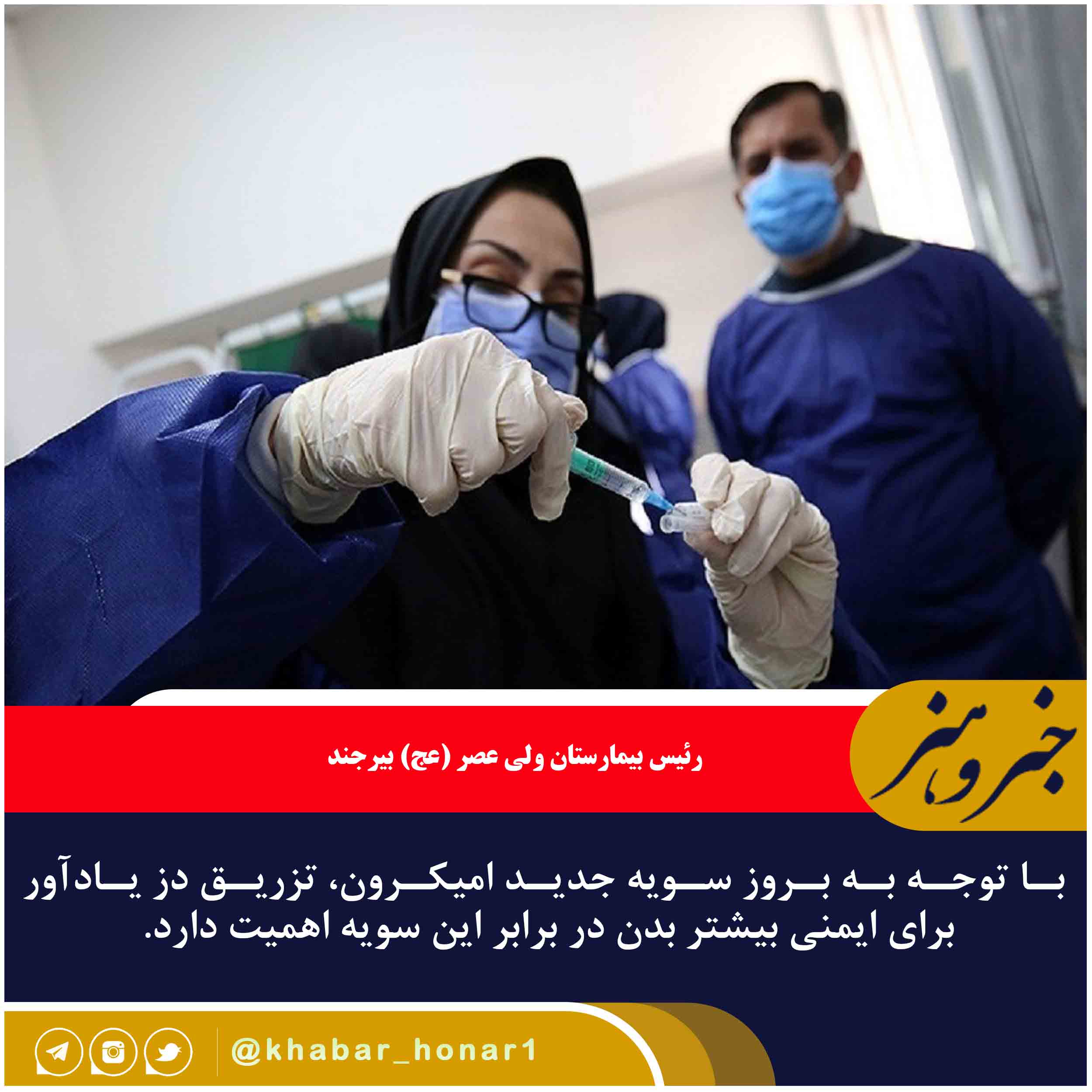 محمودی راد رئیس بیمارستان ولی عصر (عج) بیرجند گفت: با توجه به بروز سویه جدید امیکرون، تزریق دز یادآور برای ایمنی بیشتر بدن در برابر این سویه اهمیت دارد.