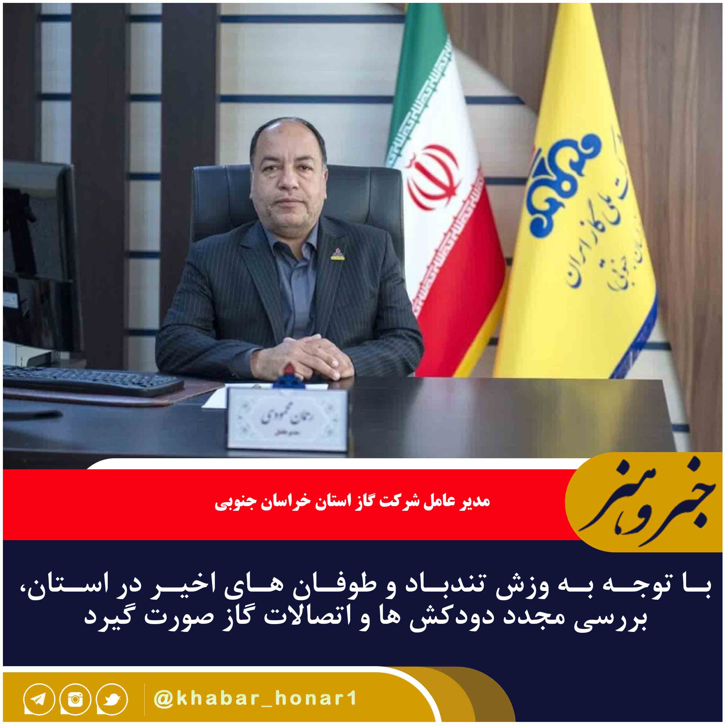 مدیر عامل شرکت گاز استان خراسان جنوبی از مردم خواست با توجه به وزش تندباد و طوفان در استان، در بررسی مجدد دودکش ها و اتصالات دقت لازم را بکار گیرند.
