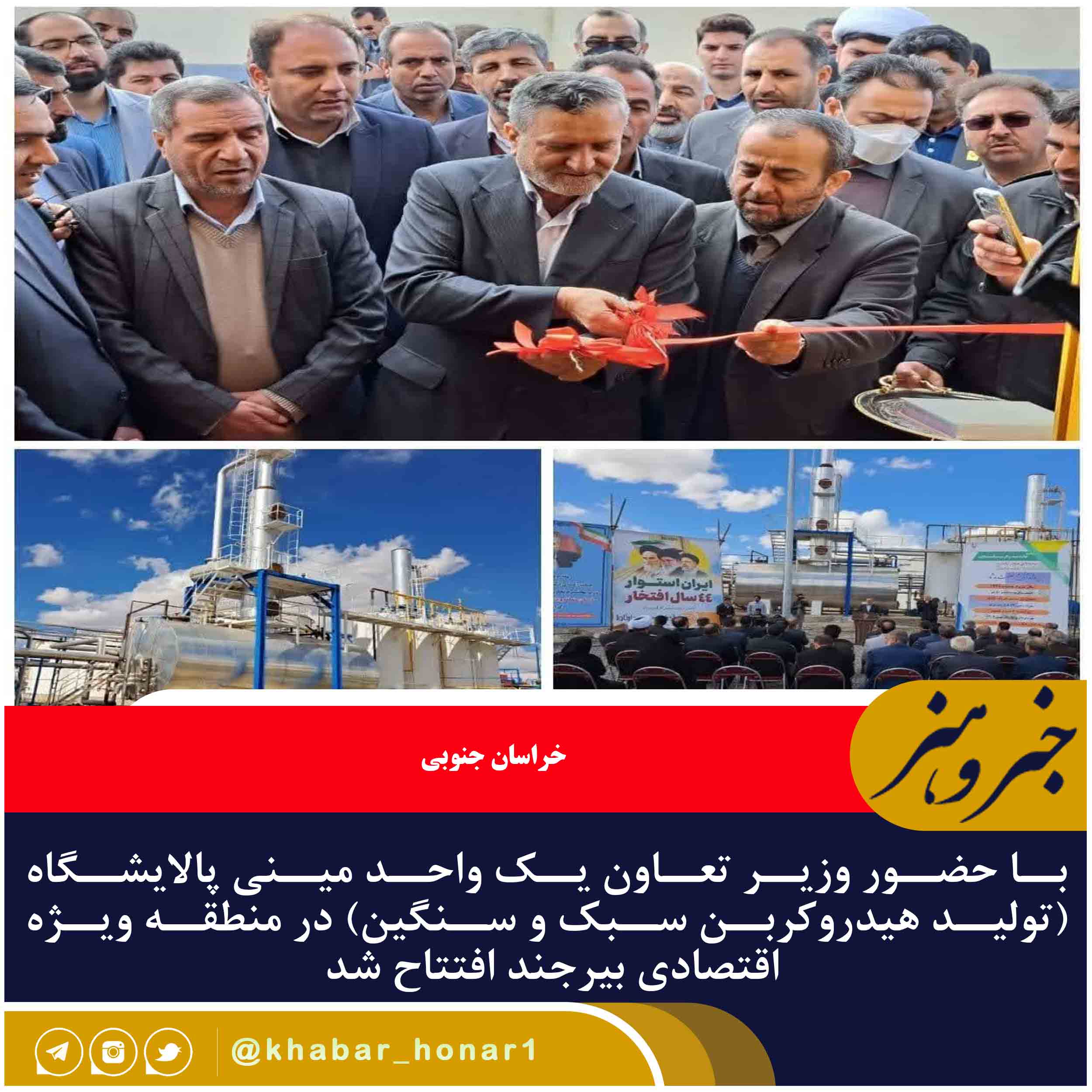 یک واحد مینی پالایشگاه (تولید هیدروکربن سبک و سنگین) در نهمین روز دهه فجر با حضور وزیر تعاون، کار و رفاه اجتماعی در منطقه ویژه اقتصادی بیرجند افتتاح شد.