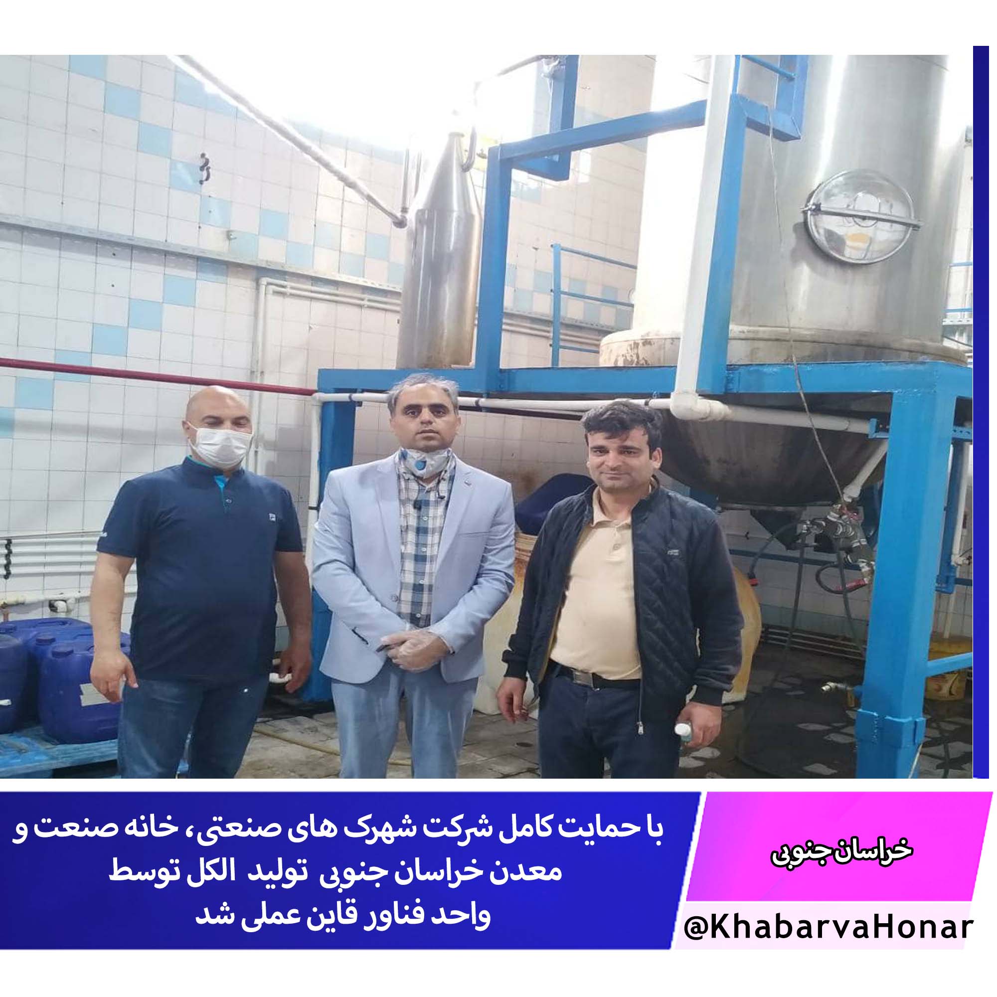 با پیگیری و حمایت شرکت شهرک های صنعتی، خانه صنعت و معدن استان و تلاش شبانه روزی یک ماهه پرسنل عرقیات ارسطو مستقر در شهرک صنعتی قاین برای اولین بار در استان الکل (بیواتانول_الکل سازگار با محیط زیست) در این واحد صنعتی تولید شد.