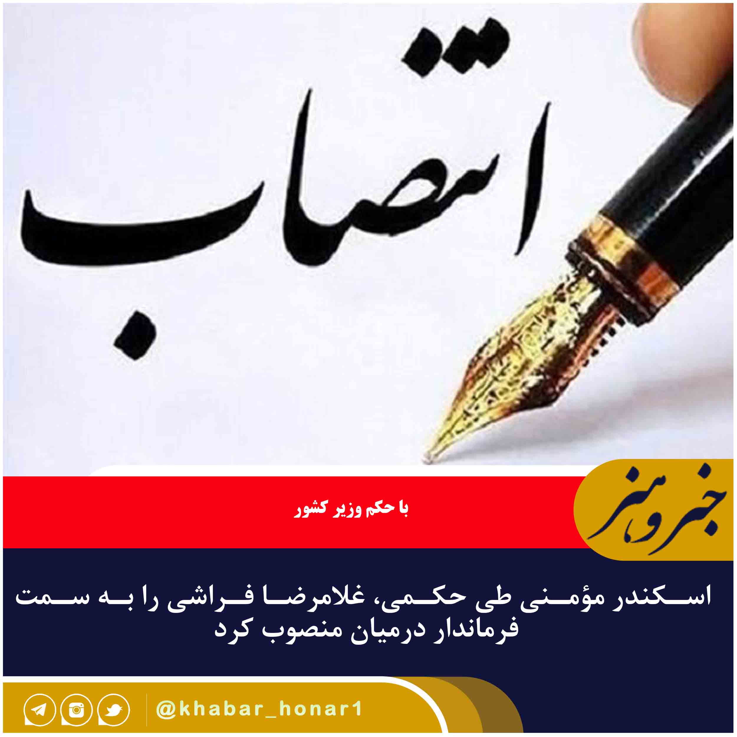 در متن این حکم آمده؛ به موجب این حکم و بنا به پیشنهاد استاندار محترم خراسان جنوبی به سمت فرماندار شهرستان درمیان به مدت ۴ سال منصوب میشوید.