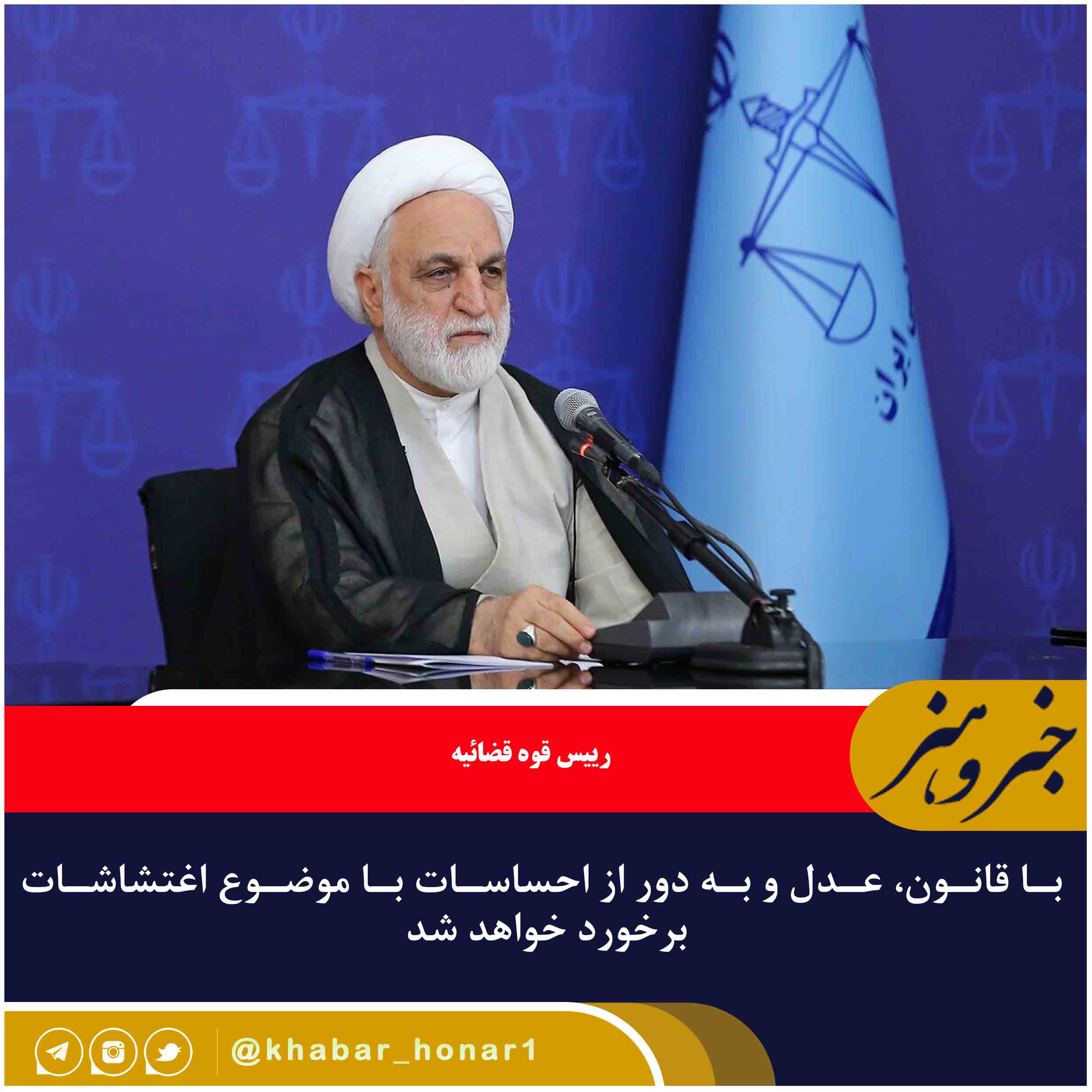حجت الاسلام و المسلمین غلامحسین محسنی اژهای روز پنجشنبه در دیدار با قضات و کارکنان دستگاه های تابعه قوه قضائیه در خراسان جنوبی اظهار داشت: با هر کسی که امنیت مردم را بر همزده و مانع از کسب و کار مردم شده و یا تیغ به روی مردم کشیده و به مقدسات مردم بیاحترامی و به جان و مال آنان تعرض کرده و به اجبار چادر از سر مردم کشیده و نیز امنیت و آرامش مردم را از بین برده و بی آرامشی را تحمیل کرده است برخورد شدید و قاطع طبق قانون میشود وگرنه در نزد خدا و قانون و مردم مسئول هستیم.
