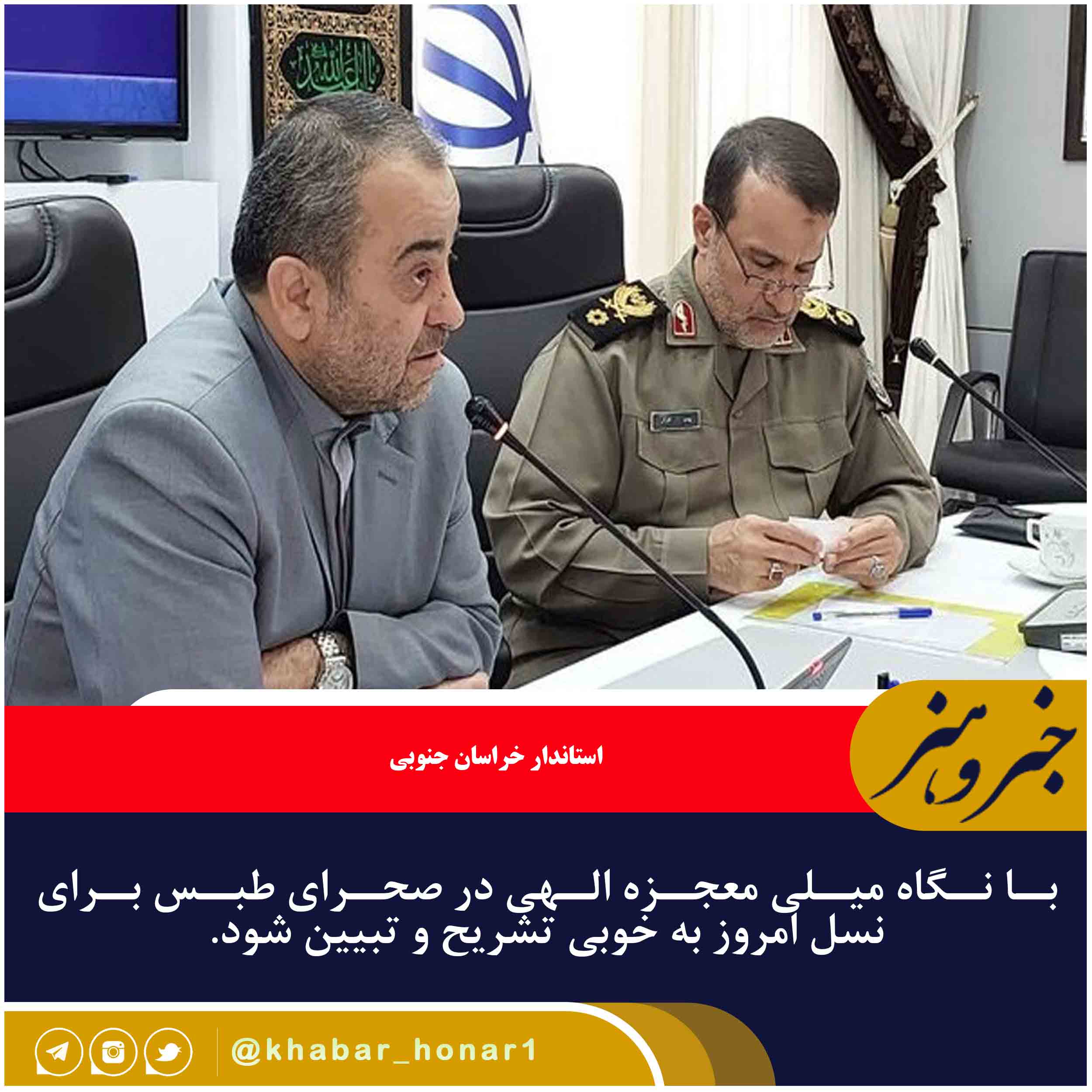 استاندار خراسان جنوبی خواستار نگاه ملی به گرامیداشت واقعه شکست آمریکا در صحرای طبس شد و گفت: باید این معجزه الهی در صحرای طبس برای نسل امروز به خوبی تشریح و تبیین شود.جواد قناعت در نشست شورای هماهنگی حفظ آثار و نشر ارزشهای دفاع مقدس خراسان جنوبی که با حضور سردار سرتیپ بهمن کارگر رئیس بنیاد حفظ آثار و نشر ارزشهای دفاع مقدس برگزار شد افزود: امیدواریم سال آینده حضور سخنرانان کشوری را در برنامه پنجم اردیبهشت سالروز شکست آمریکا در صحرای طبس داشته باشیم که در این زمینه کوتاهی شده است.