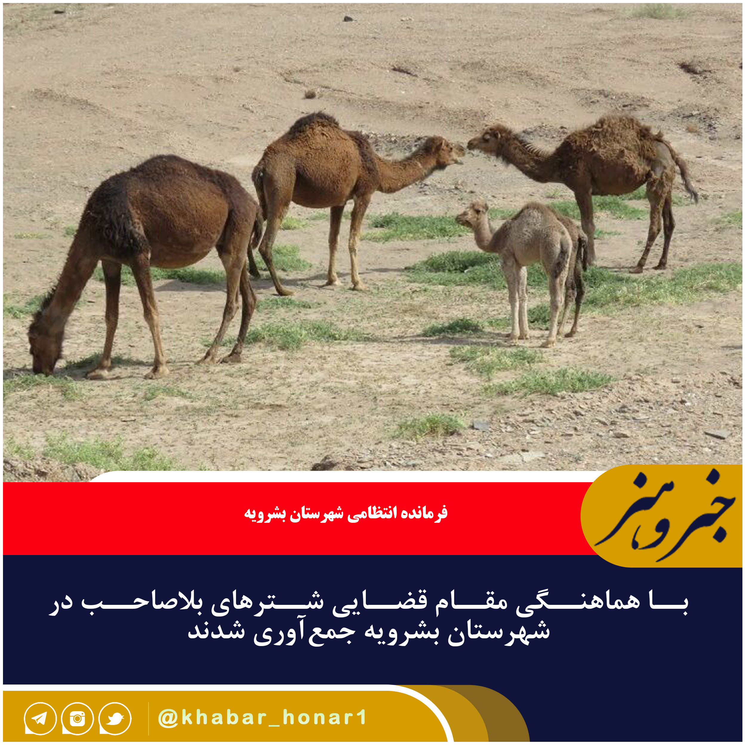 ، سرهنگ نصرالله طاهری در تشریح این خبر اظهار داشت: با توجه به وقوع تصادفات در محورهای مواصلاتی بشرویه بین شترهای بلاصاحب و خودروهای عبوری، با هماهنگی مقام قضایی طرح جمعآوری شترهای رها شده و بلاصاحب در دستور کار قرار گرفت.