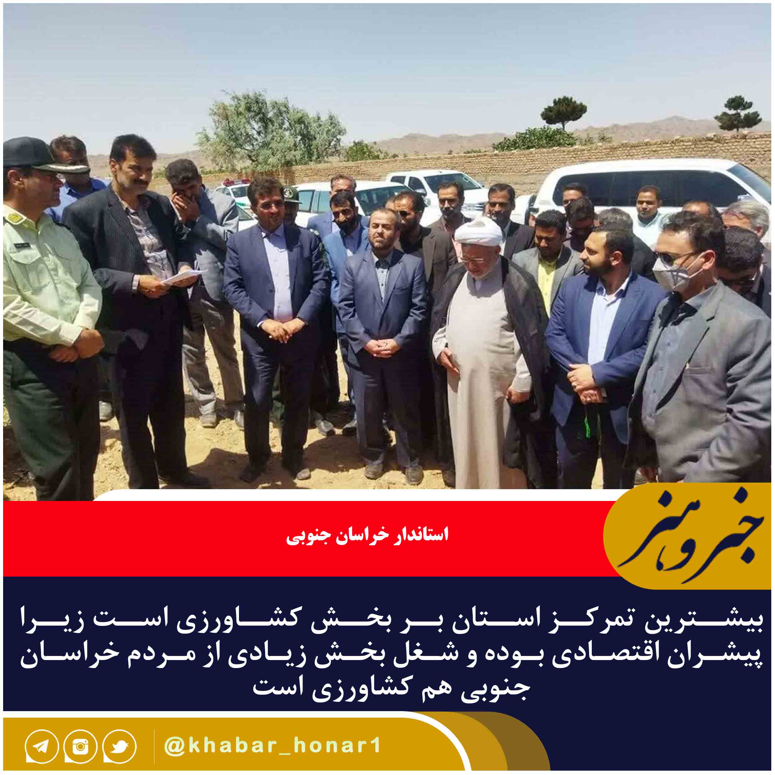 استاندار خراسان جنوبی گفت: بیشترین تمرکز استان بر بخش کشاورزی است زیرا پیشران اقتصادی بوده و شغل بخش زیادی از مردم خراسان جنوبی هم کشاورزی است.