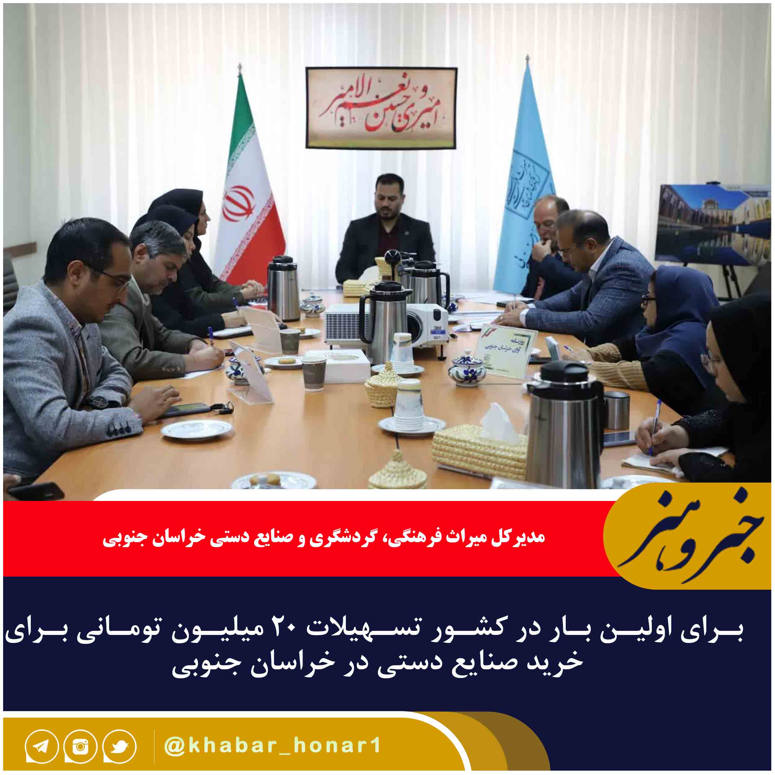 مدیرکل میراث فرهنگی، گردشگری و صنایع دستی خراسان جنوبی گفت: اولین بار در کشور با همکاری صندوق کارآفرینی امید در مدت برپایی نمایشگاه سراسری صنایع دستی تا سقف ۲۰ میلیون تومان برای خرید صنایع دستی تسهیلات در نظر گرفته شده است.
