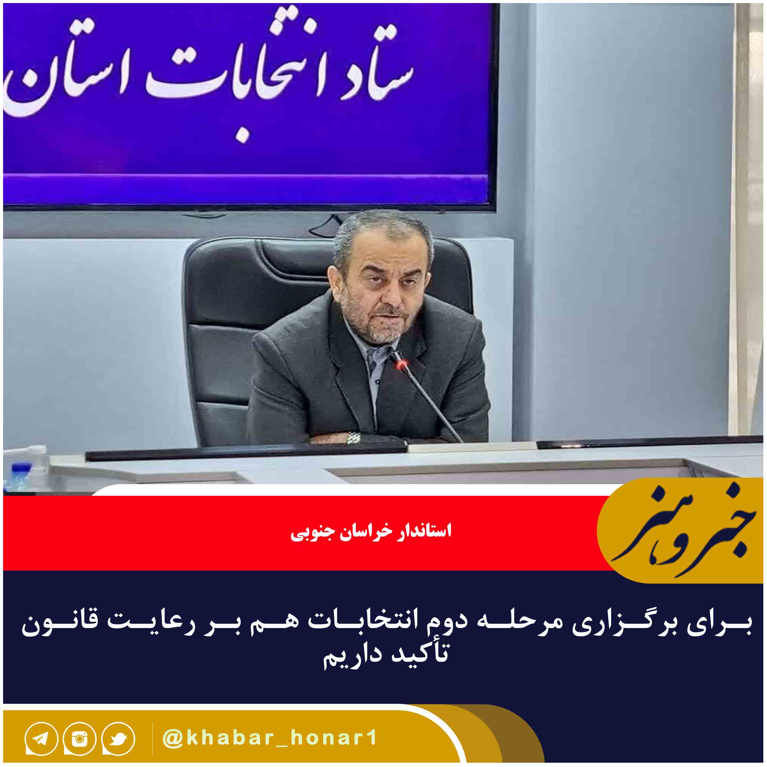 استاندار خراسان جنوبی با اشاره به اینکه زمان قطعی مرحله دوم انتخابات را وزارت کشور اعلام خواهد کرد، گفت: یک هفته مانده به زمان برگزاری انتخابات، ستاد انتخابات استان باید در محل فرمانداری بیرجند مستقر شود تا کارها را از نزدیک رصد و پیگیری کند.