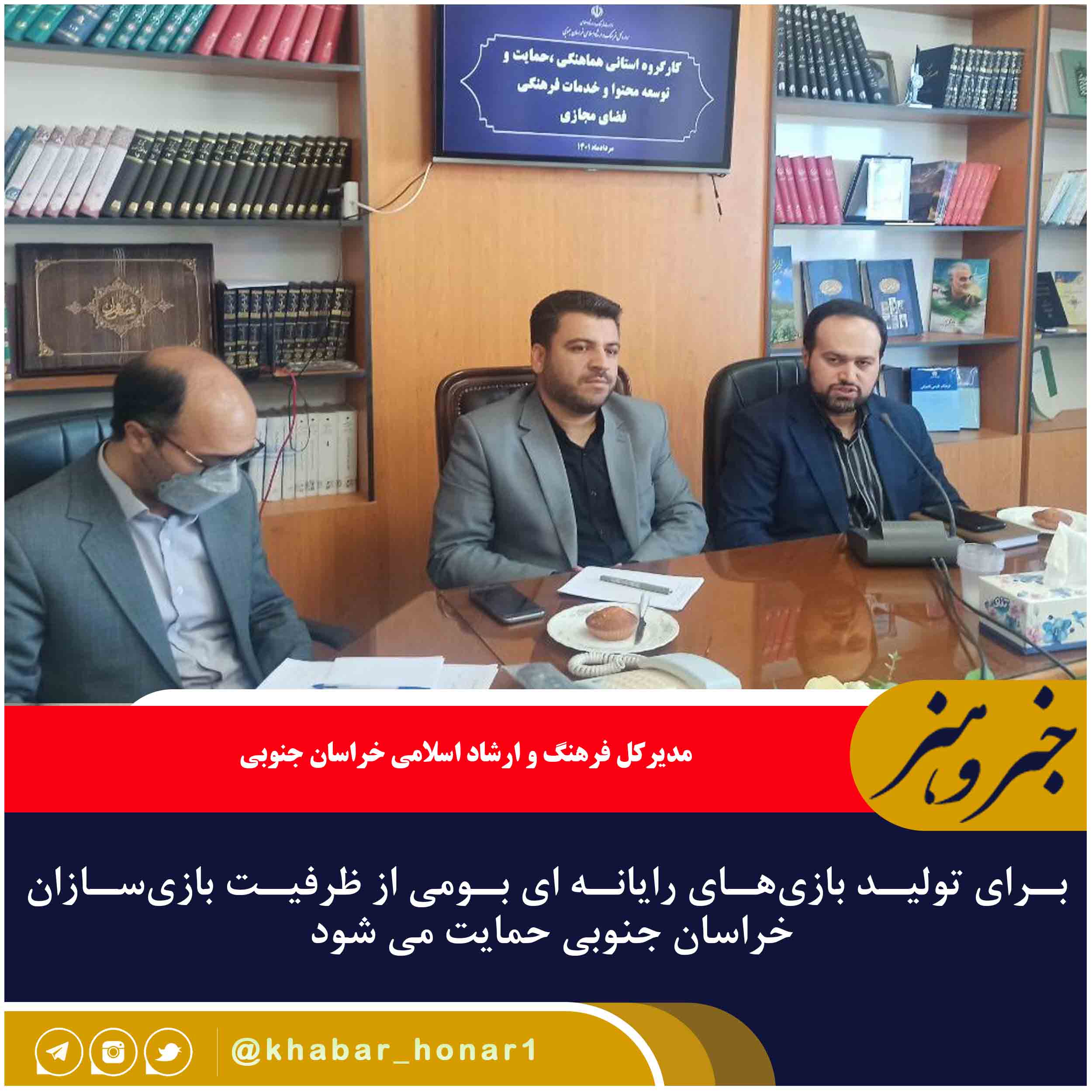 وی گفت: در سفر اخیر به تهران و دیدار با معاونت‌های وزارت فرهنگ و ارشاد اسلامی، از مدیران بنیاد ملی بازی‌های رایانه‌ای دعوت کردیم تا با توجه به استعدادها و ظرفیت‌های موجود در حوزه بازی‌ها، به خراسان جنوبی سفر کنند و جلسه این کارگروه برای آشنایی با ظرفیت‌های خراسان جنوبی و اعلام برنامه‌های حمایتی بنیاد از تولیدکنندگان بازی در استان برگزار شد.