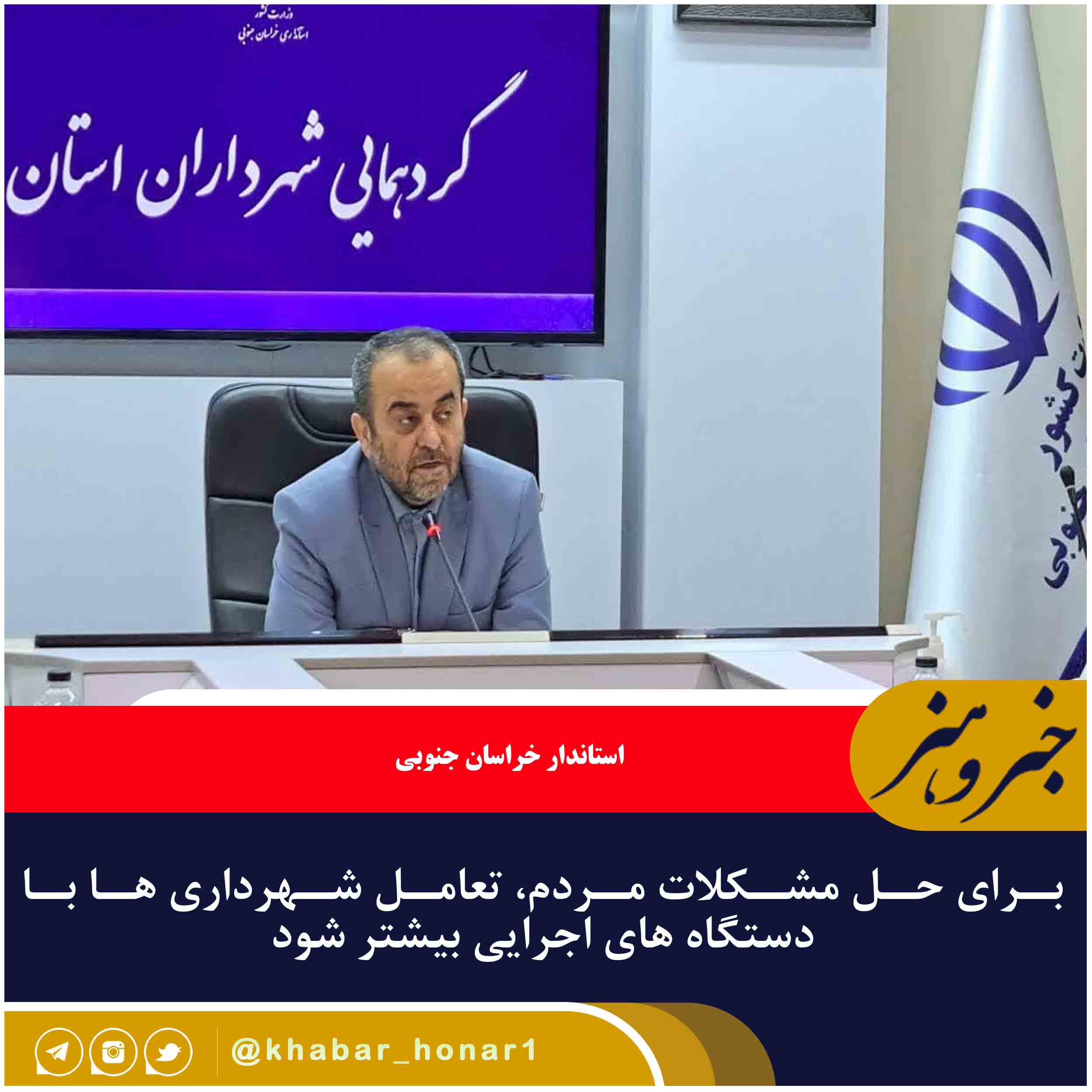 ?استاندار خراسان جنوبی تأکید کرد: برای حل مشکلات مردم، تعامل شهرداری ها با دستگاه های اجرایی افزایش یابد.