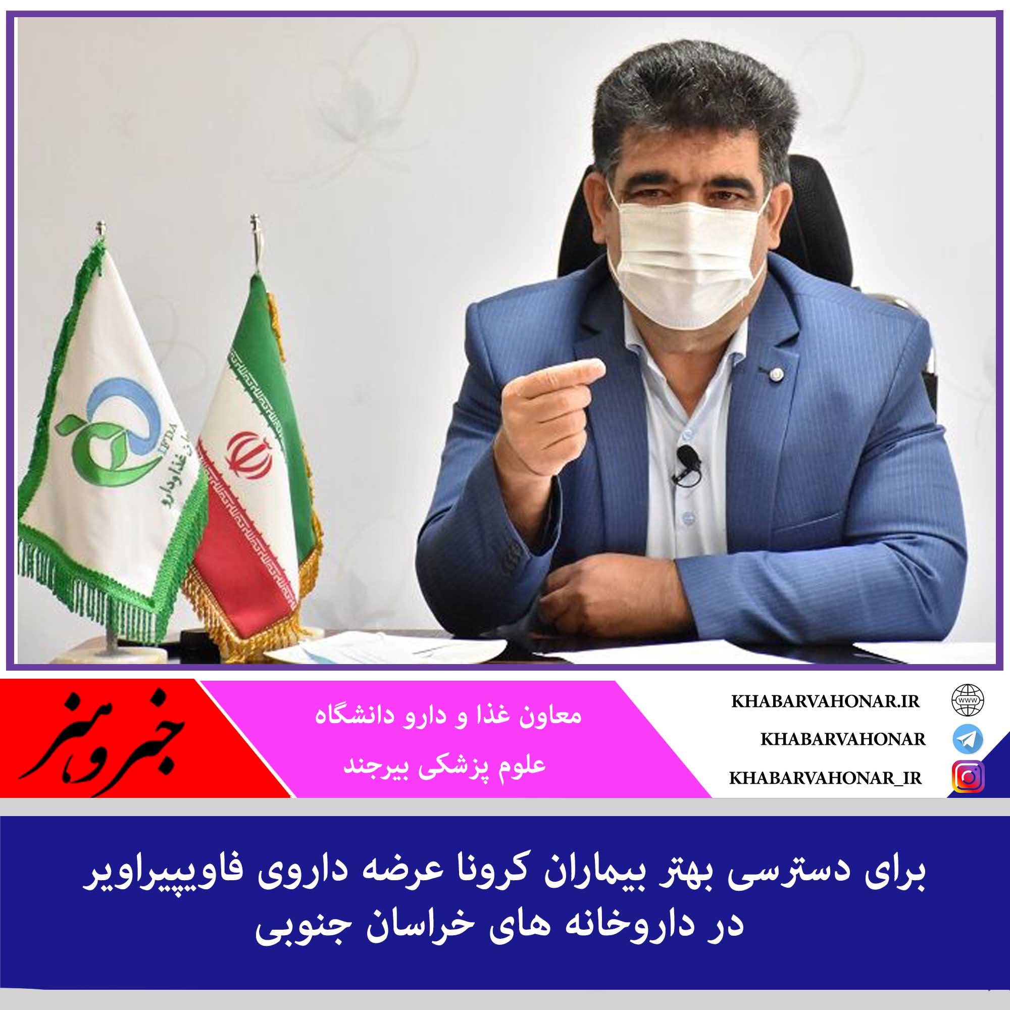 – معاون غذا و دارو دانشگاه علوم پزشکی بیرجند از عرضه داروی فاویپیراویر که جزو داروهای ضد ویروس است در تعدادی از داروخانههای استان خراسان جنوبی خبر داد.