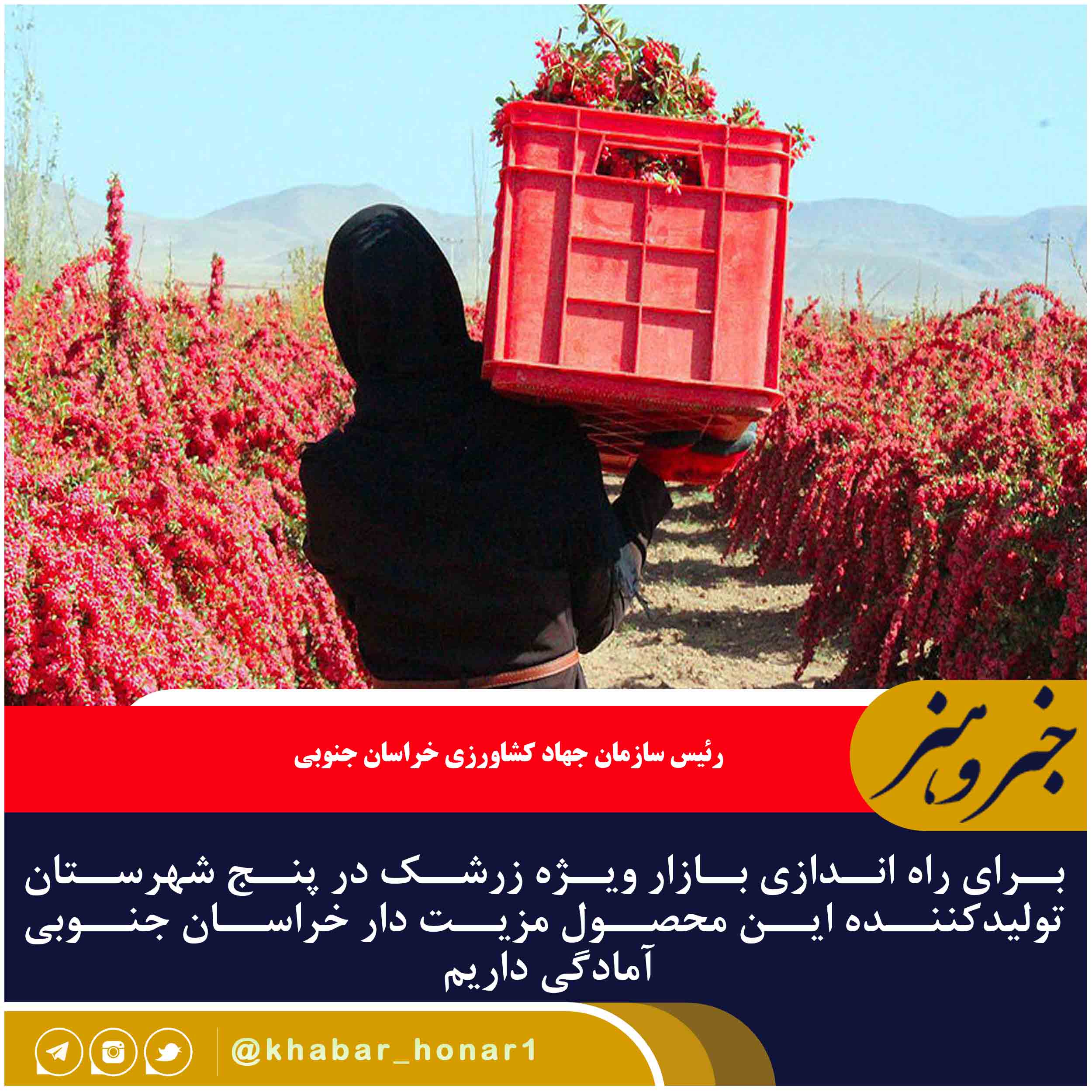 رئیس سازمان جهاد کشاورزی خراسان جنوبی، برای راه اندازی بازار ویژه زرشک در پنج شهرستان تولیدکننده این محصول مزیت دار خراسان جنوبی اعلام آمادگی کرد و گفت: اختتامیه جشنواره ملی زرشک پایان کار نیست؛ بلکه آغازی برای تحقق آرزوی دیرینه مردم این منطقه در راستای اقتصادی شدن زرشک است.