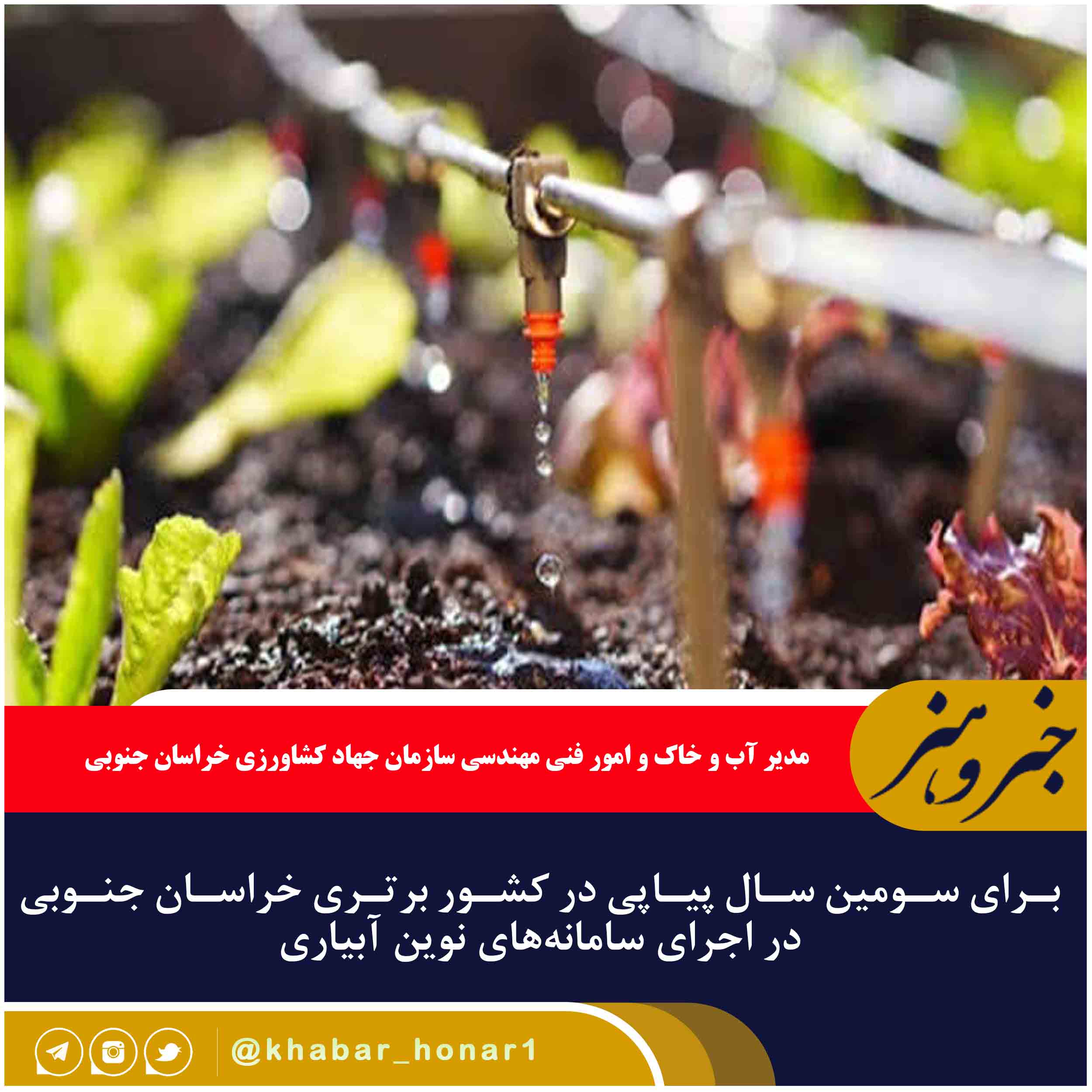 خراسان جنوبی در اجرای سامانههای نوین آبیاری ، برای سومین سال پیاپی در کشور برتر شد.