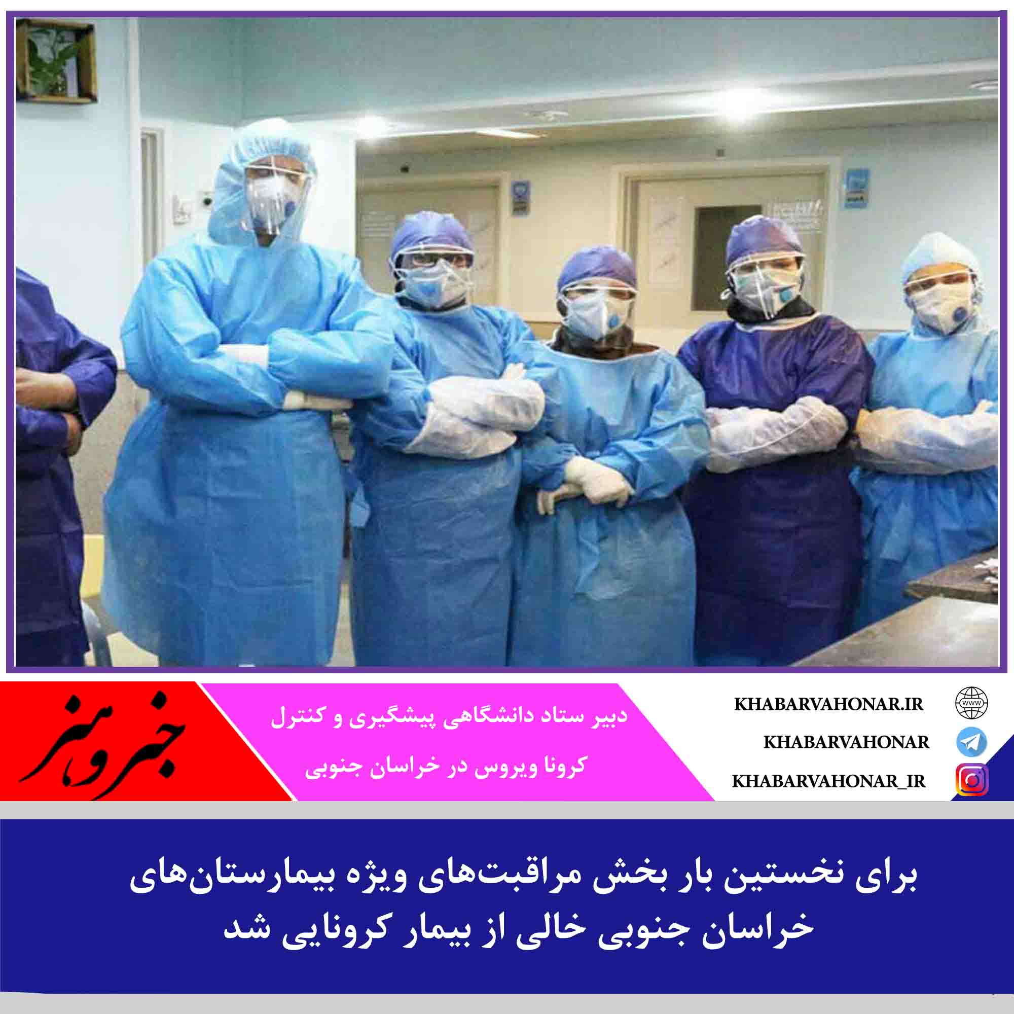 دبیر ستاد دانشگاهی پیشگیری و کنترل کرونا ویروس در خراسان جنوبی اظهار کرد: برای اولین بار بعد از شیوع کرونا هیچگونه بیمار کرونایی در بخش مراقبتهای ویژه بیمارستانهای استان بستری نیست و این بخش بدون بیمار کرونایی شد.