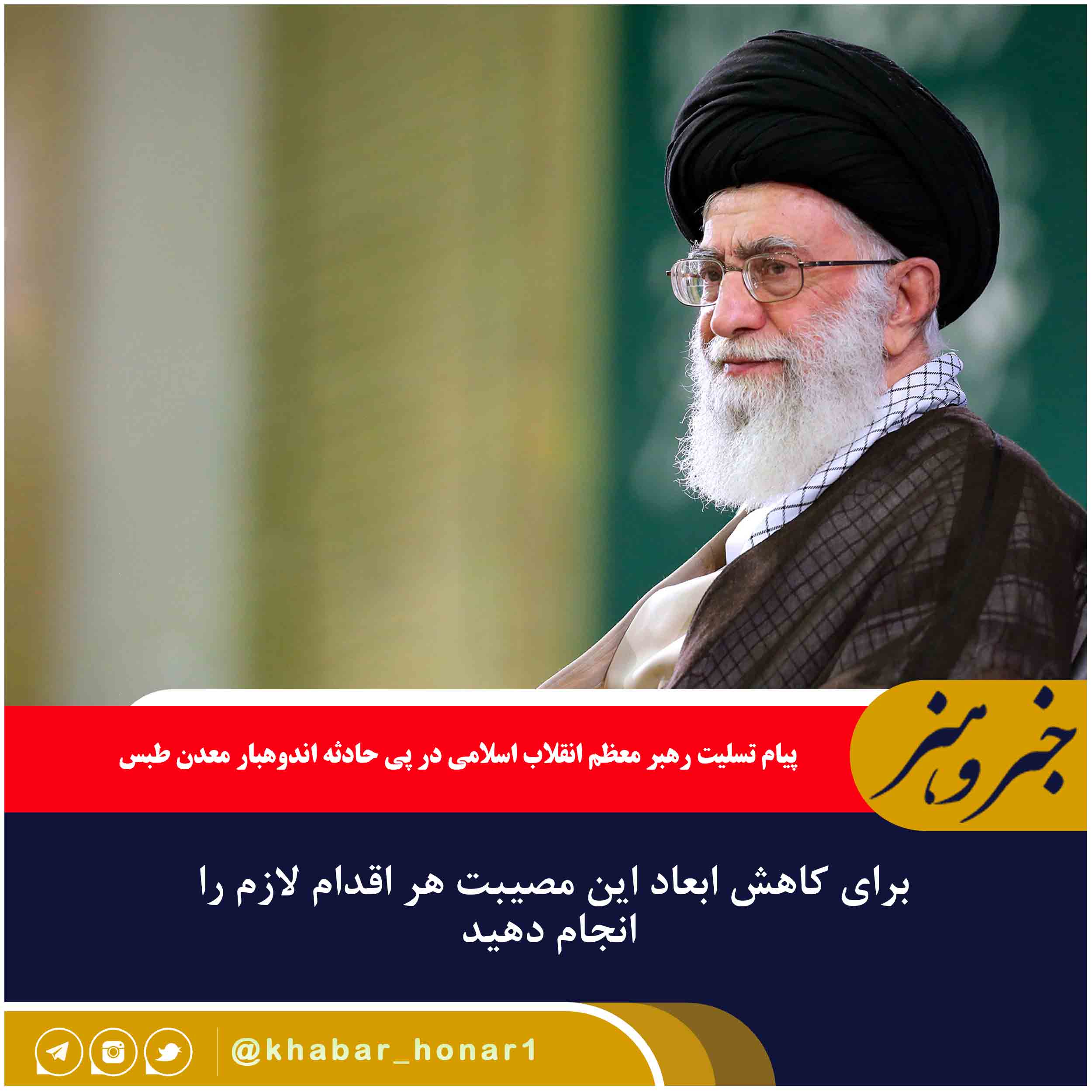 در پی حادثه اندوهبار انفجار معدن در طبس و جان باختن شماری از کارگران، حضرت آیت‌الله خامنه‌ای رهبر معظم انقلاب اسلامی در پیامی ضمن تسلیت به خانواده‌های داغدار، بر لزوم بیشترین تلاش برای امدادرسانی به کارگران تاکید کردند.