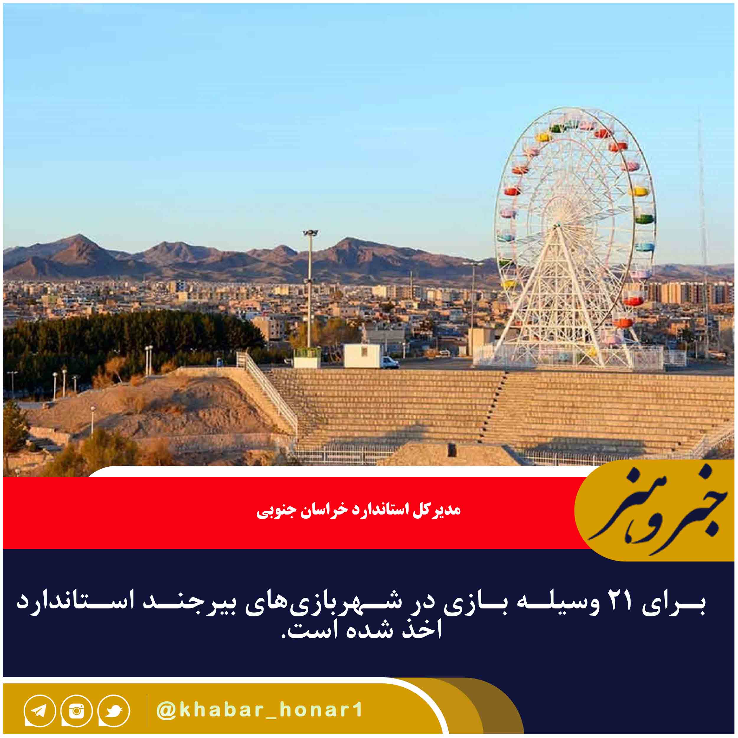 دستورانی مدیرکل استاندارد خراسان جنوبی گفت در دیدار با نماینده ولی فقیه در استان گفت: در سطح استان ۳۷۰ بازرسی از سطح شهربازیهای استان صورت گرفته و در این زمینه تمام وسایل بازی در ۲۶ بوستان بیرجند شناسایی شده و در شهرهای بازی از ۴۷ وسیله ۲۱ مورد را مجبور به اخذ استاندار کردیم.