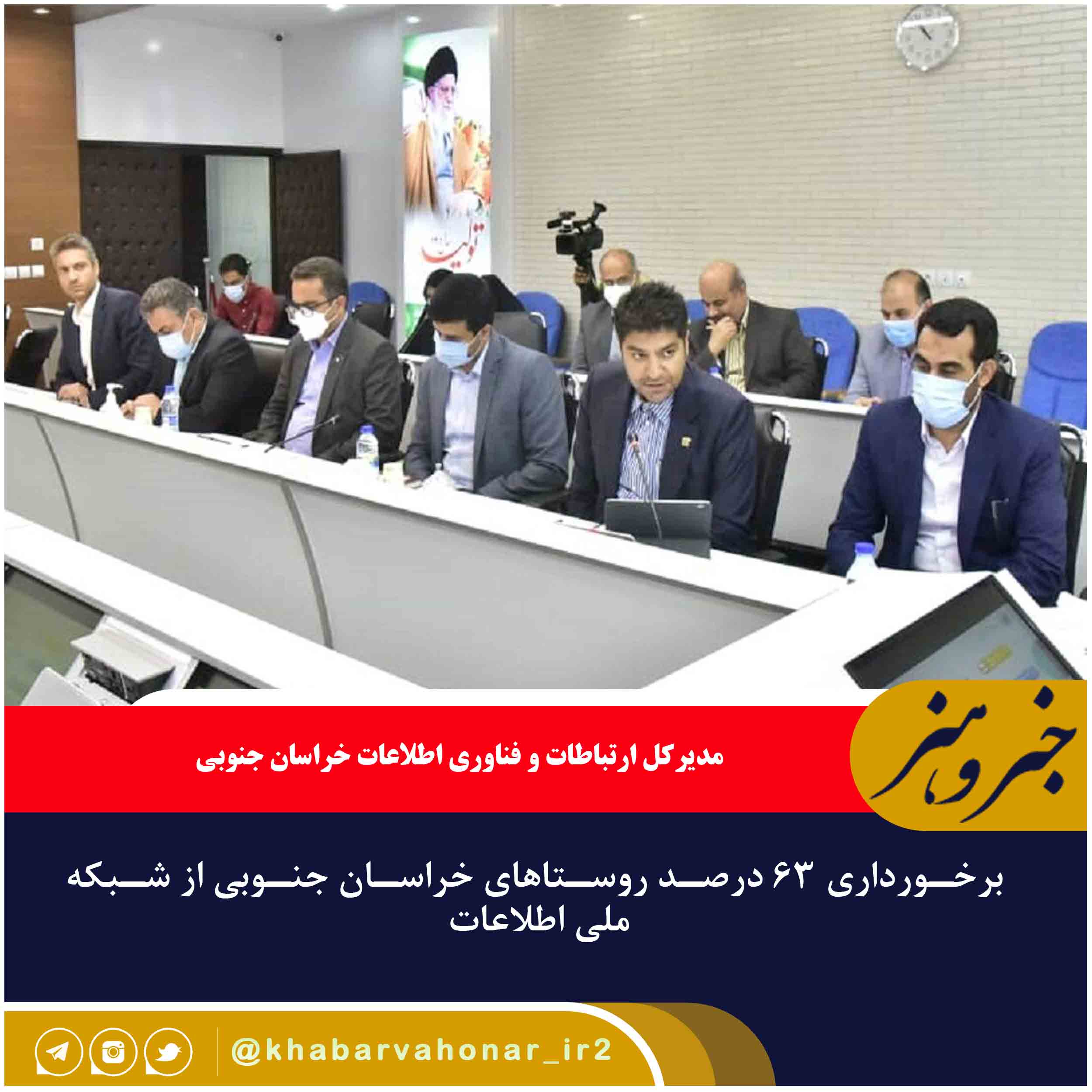 مدیرکل ارتباطات و فناوری اطلاعات خراسان جنوبی گفت: تاکنون ۶۳ درصد روستاهای بالای ۲۰ خانوار استان به شبکه ملی اطلاعات متصل شدهاند و از خدمات اینترنت پرسرعت بهرهمند هستند.