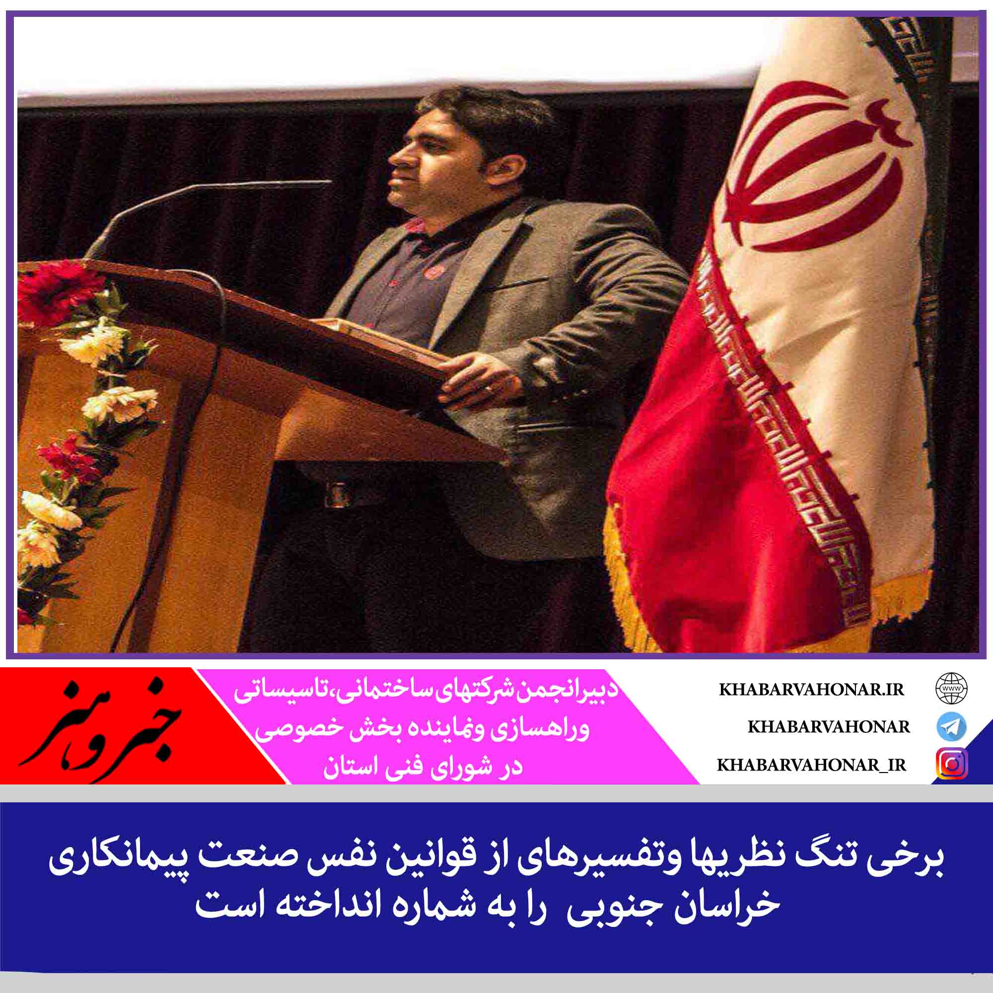 گفت برخی تنگ نظریها وتفسیرهای شاذ از قوانین نفس صنعت پیمانکاری استان را به شماره انداخته است