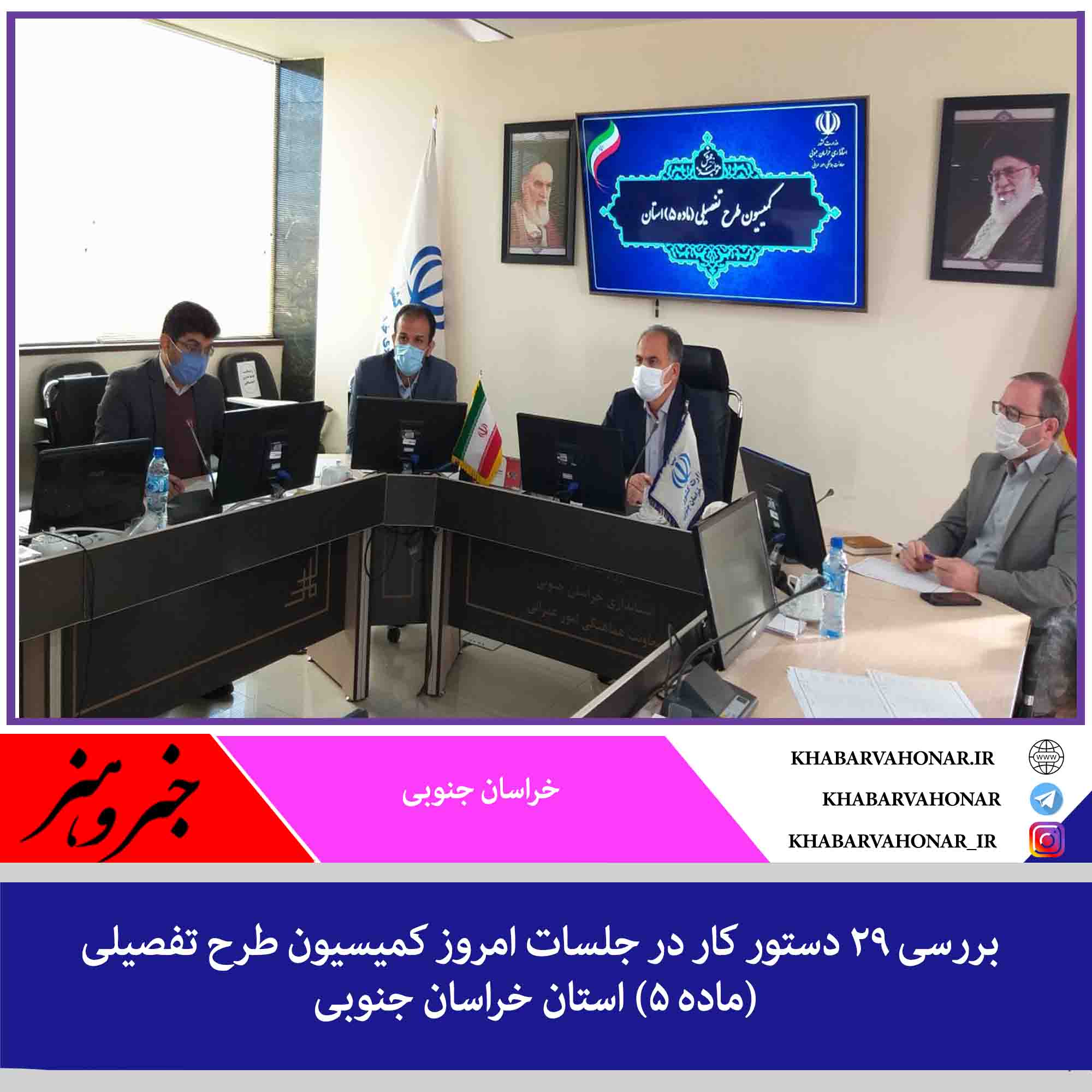 دهمین و یازدهمین جلسه کمیسیون طرح تفصیلی (ماده ۵) استان خراسان جنوبی در سال ۹۹ در صبح و ظهر به ریاست دکتر خوش خبر سرپرست معاونت هماهنگی امور عمرانی استانداری خراسان جنوبی وبا حضور مهندس داعی مدیر کل راه وشهرسازی استان( دبیر کمیسیون) و سایراعضا کمیسیون در محل استانداری خراسان جنوبی برگزار گردید .