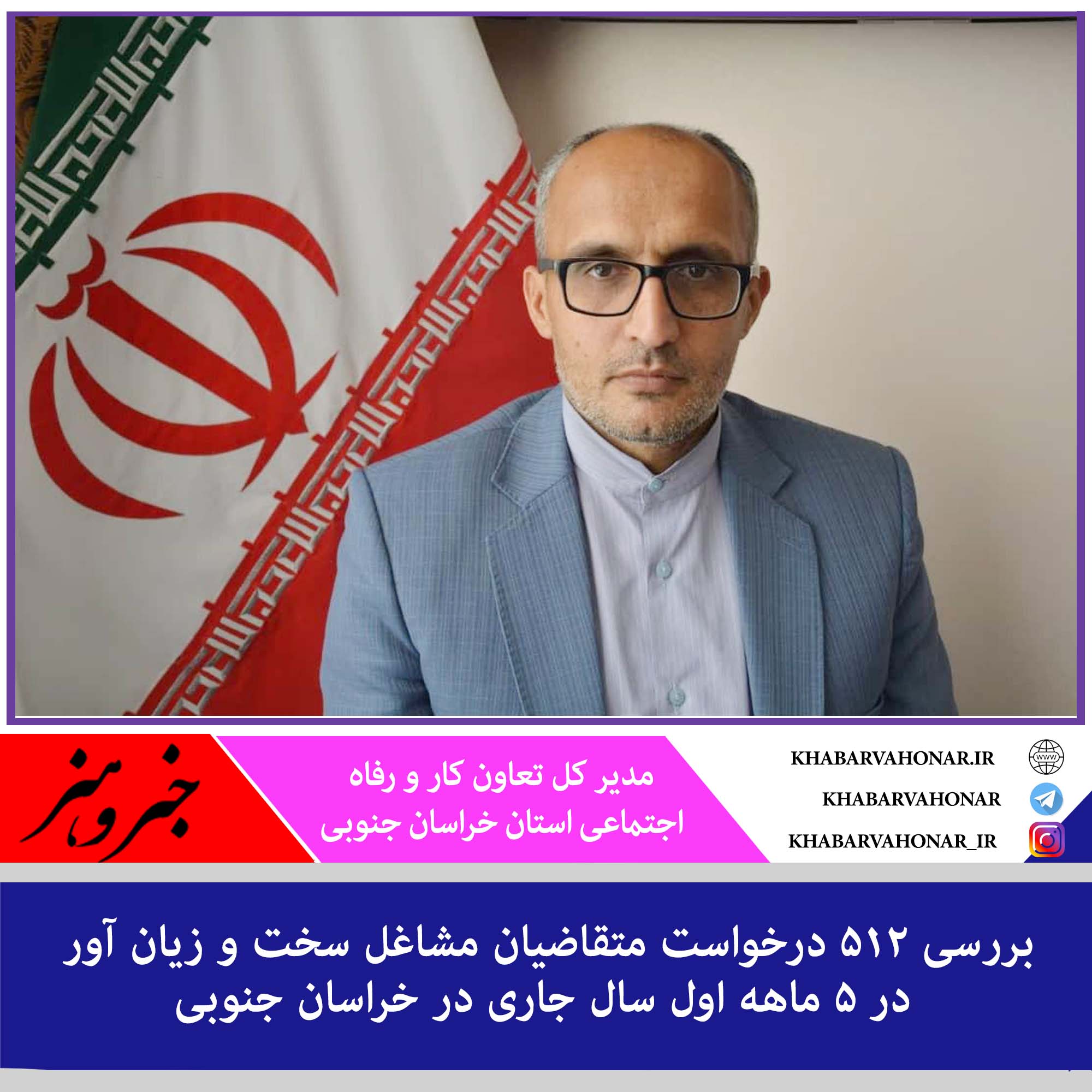 بررسی ۵۱۲ درخواست متقاضیان مشاغل سخت و زیان آور در ۵ ماهه اول سال جاری در خراسان جنوبی