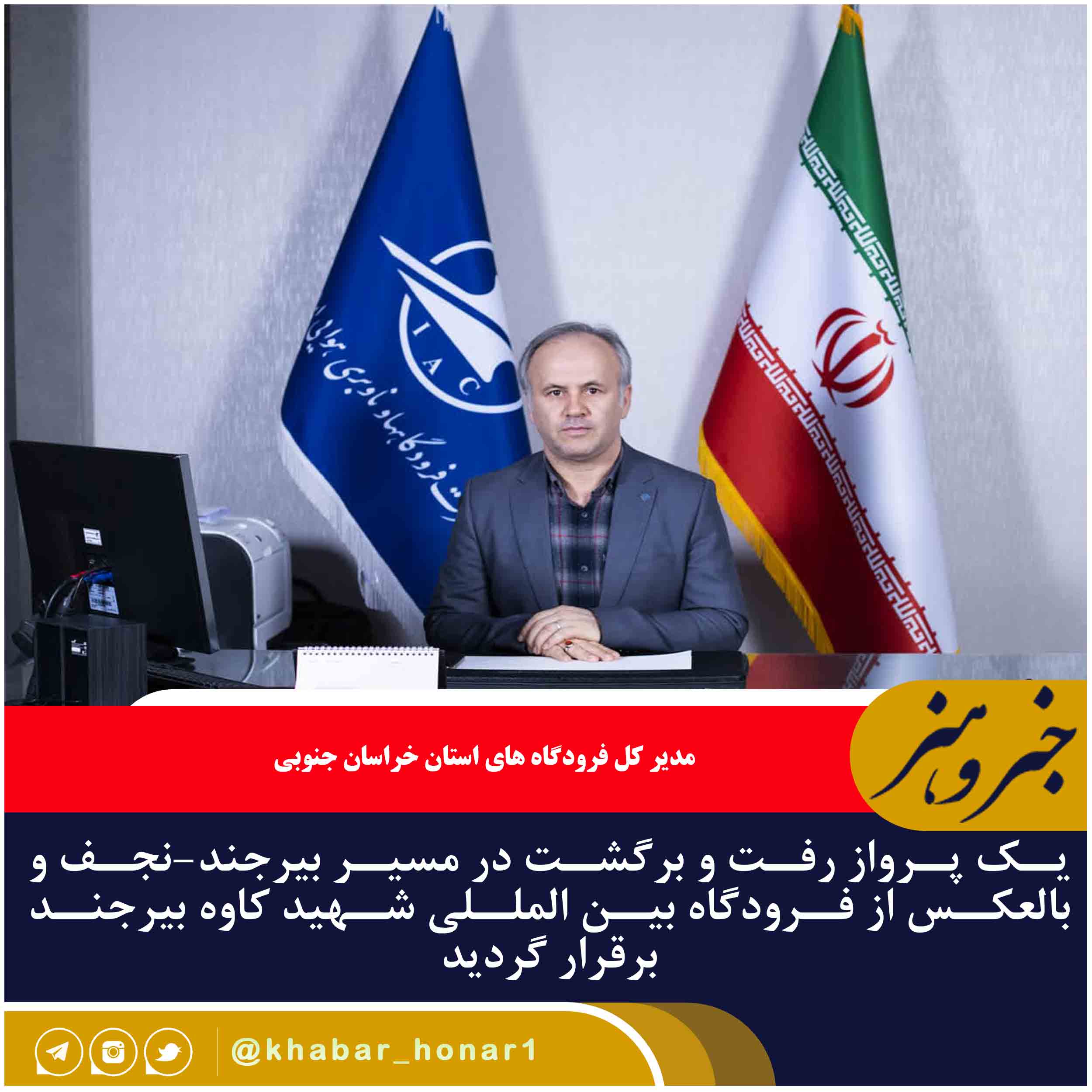 یک پرواز رفت و برگشت در مسیر بیرجند-نجف و بالعکس از فرودگاه بین المللی شهید کاوه بیرجند برقرار گردید.
