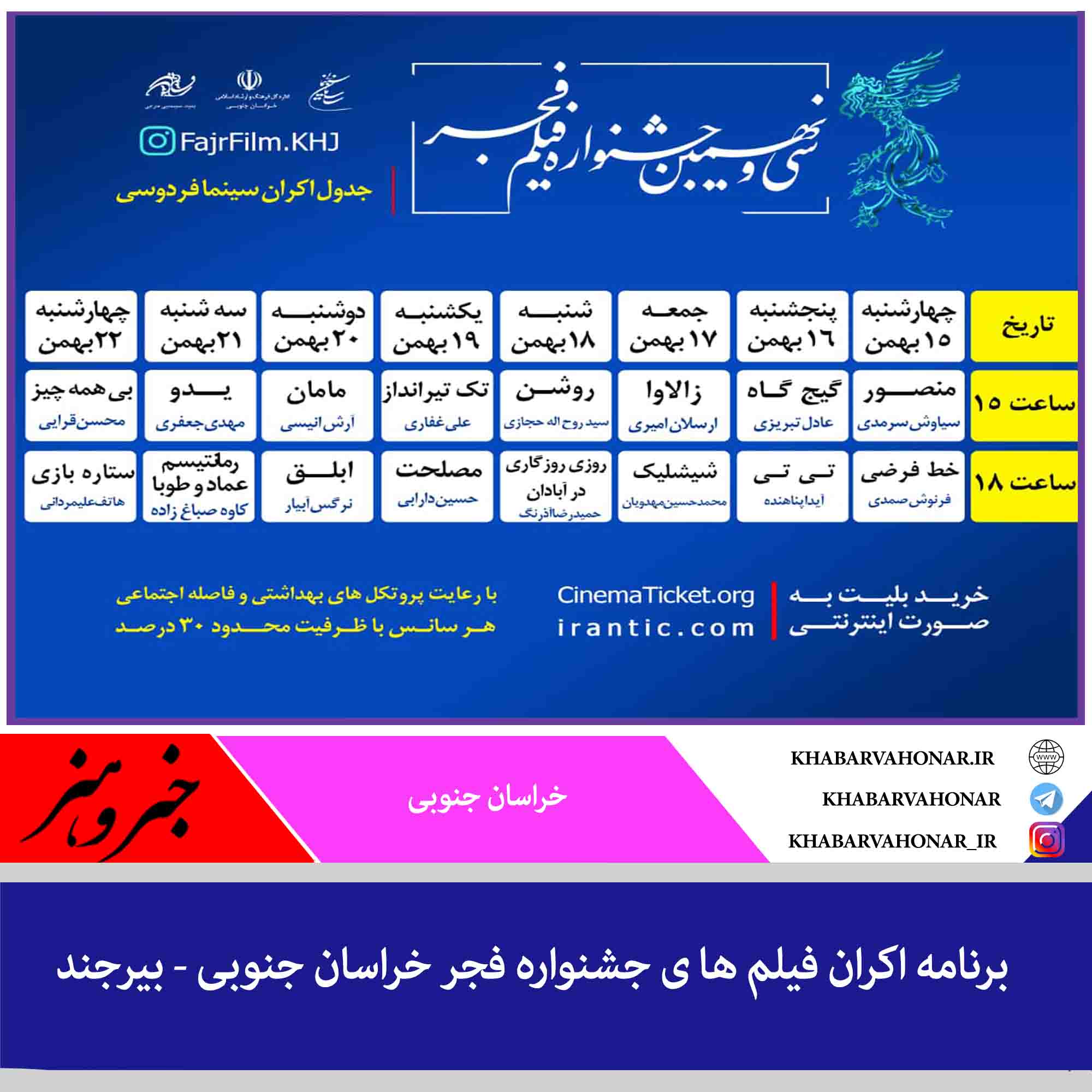 برنامه اکران فیلم ها ی جشنواره فجر خراسان جنوبی – بیرجند