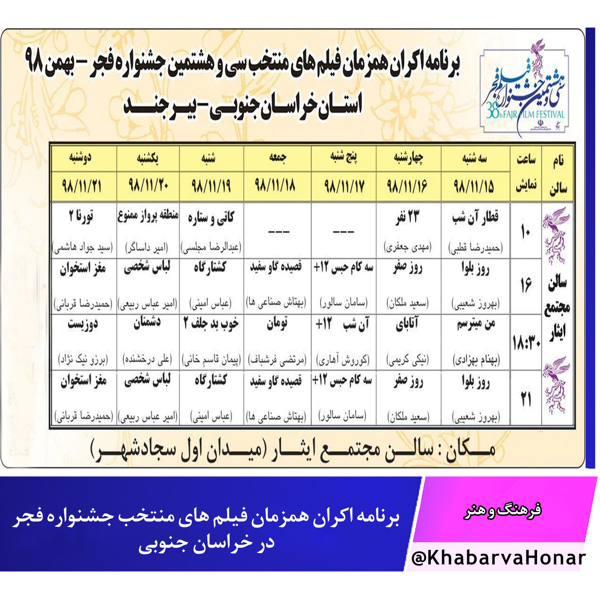 برنامه اکران همزمان فیلم های منتخب جشنواره فجر در خراسان جنوبی
