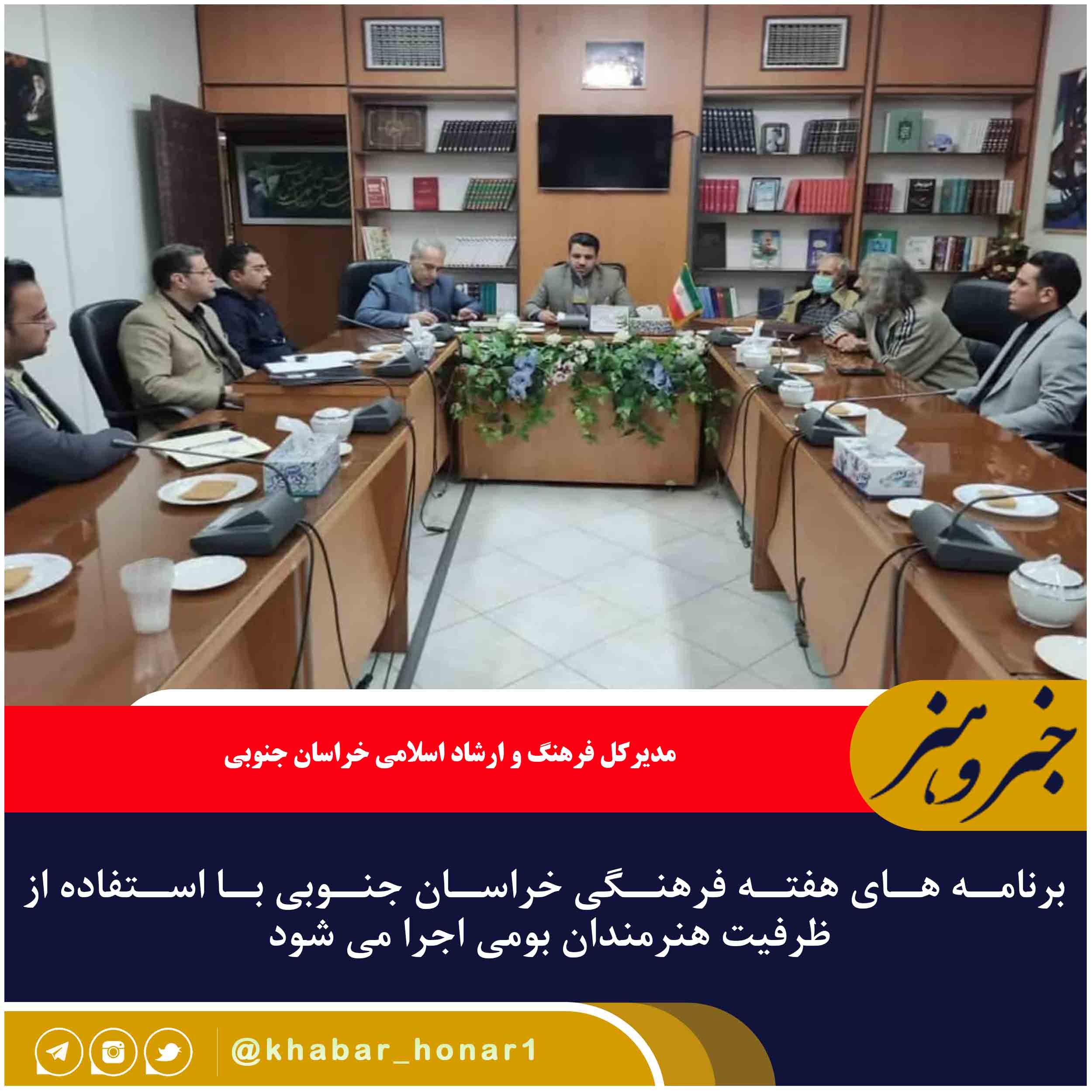 در آستانه هفته فرهنگی استان جلسه هماهنگی پیرامون برگزاری هفته فرهنگی استان با حضور جمعی از هنرمندان و به میزبانی اداره کل فرهنگ و ارشاد اسلامی خراسان جنوبی در سالن جلسات این اداره کل برگزار شد.