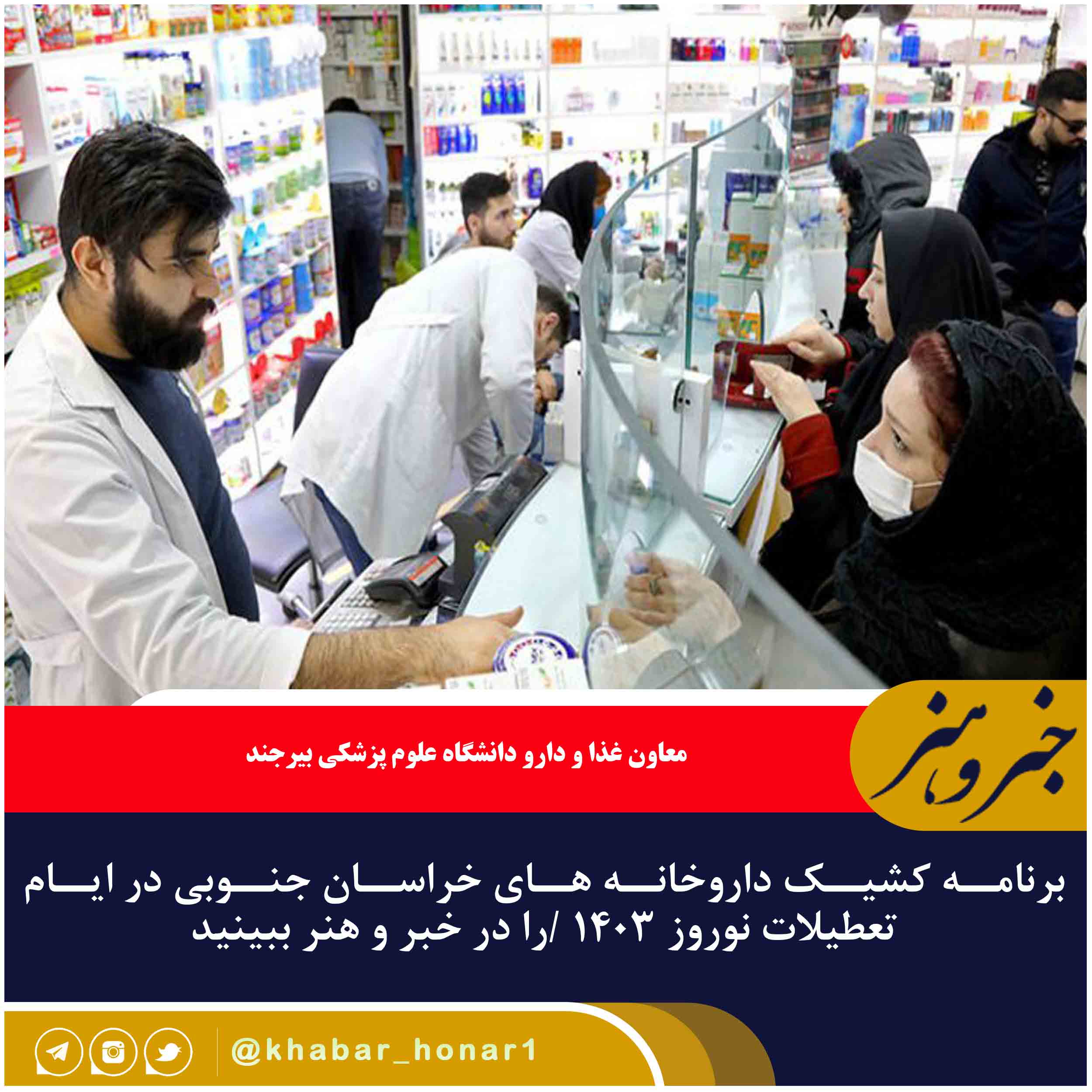 لیست کشیک داروخانه های خراسان جنوبی در ایام تعطیلات نوروز۱۴۰۳