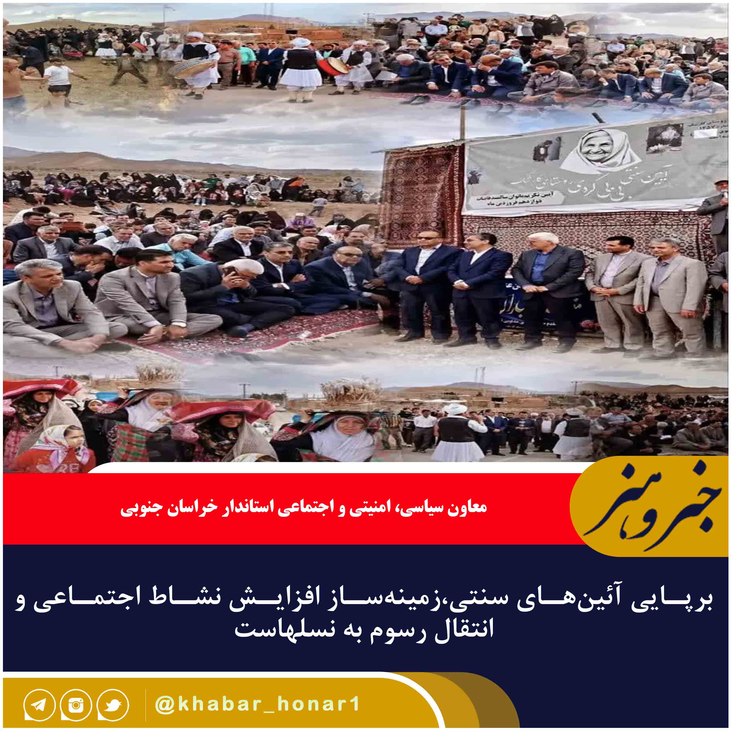 معاون سیاسی، امنیتی و اجتماعی استاندار خراسان جنوبی گفت: برپایی آئین های سنتی، زمینه ساز افزایش نشاط اجتماعی و انتقال رسوم به نسل های آینده است.
