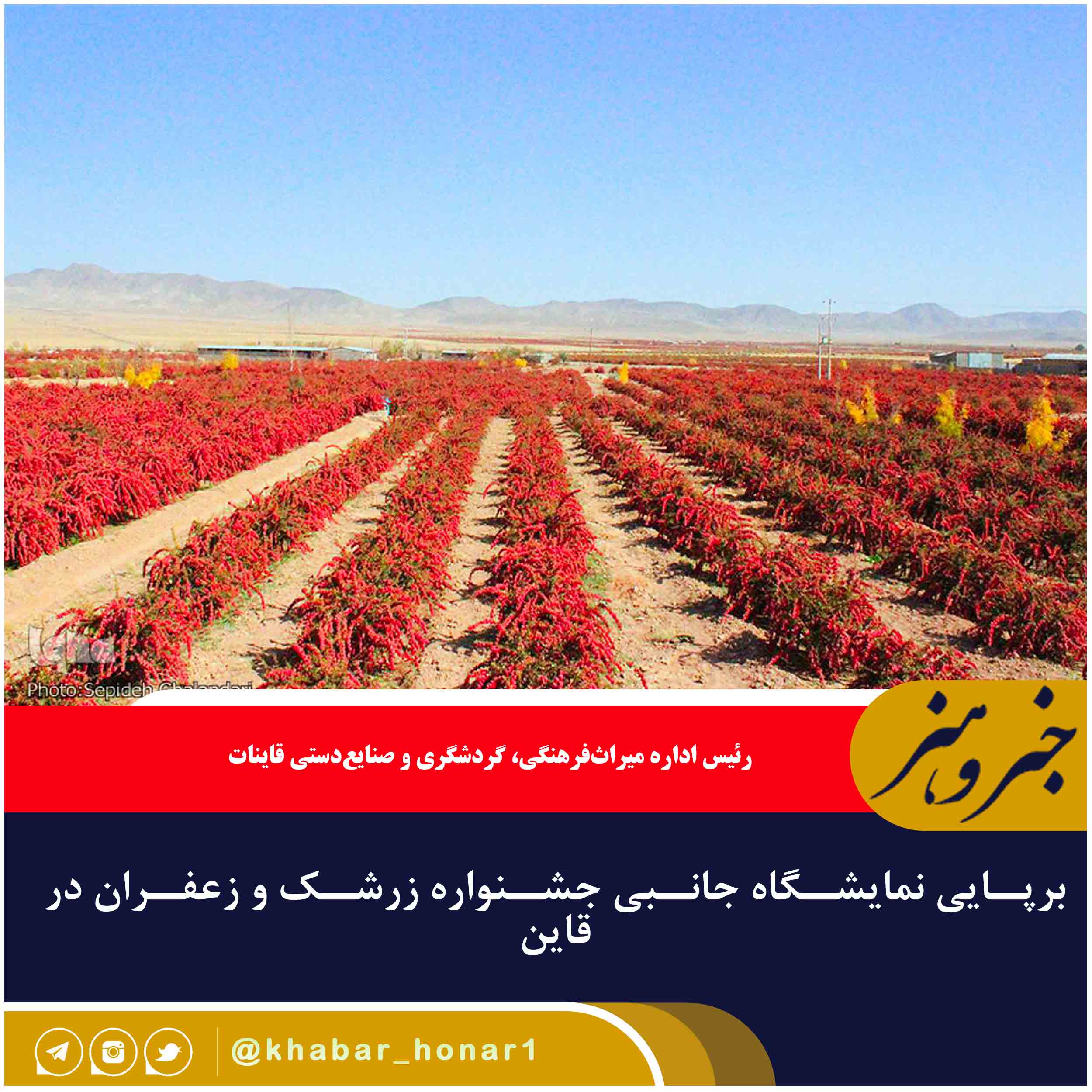 رئیس اداره میراثفرهنگی، گردشگری و صنایعدستی قاینات از برپایی نمایشگاه جانبی جشنواره زرشک و زعفران در قاین خبر داد.