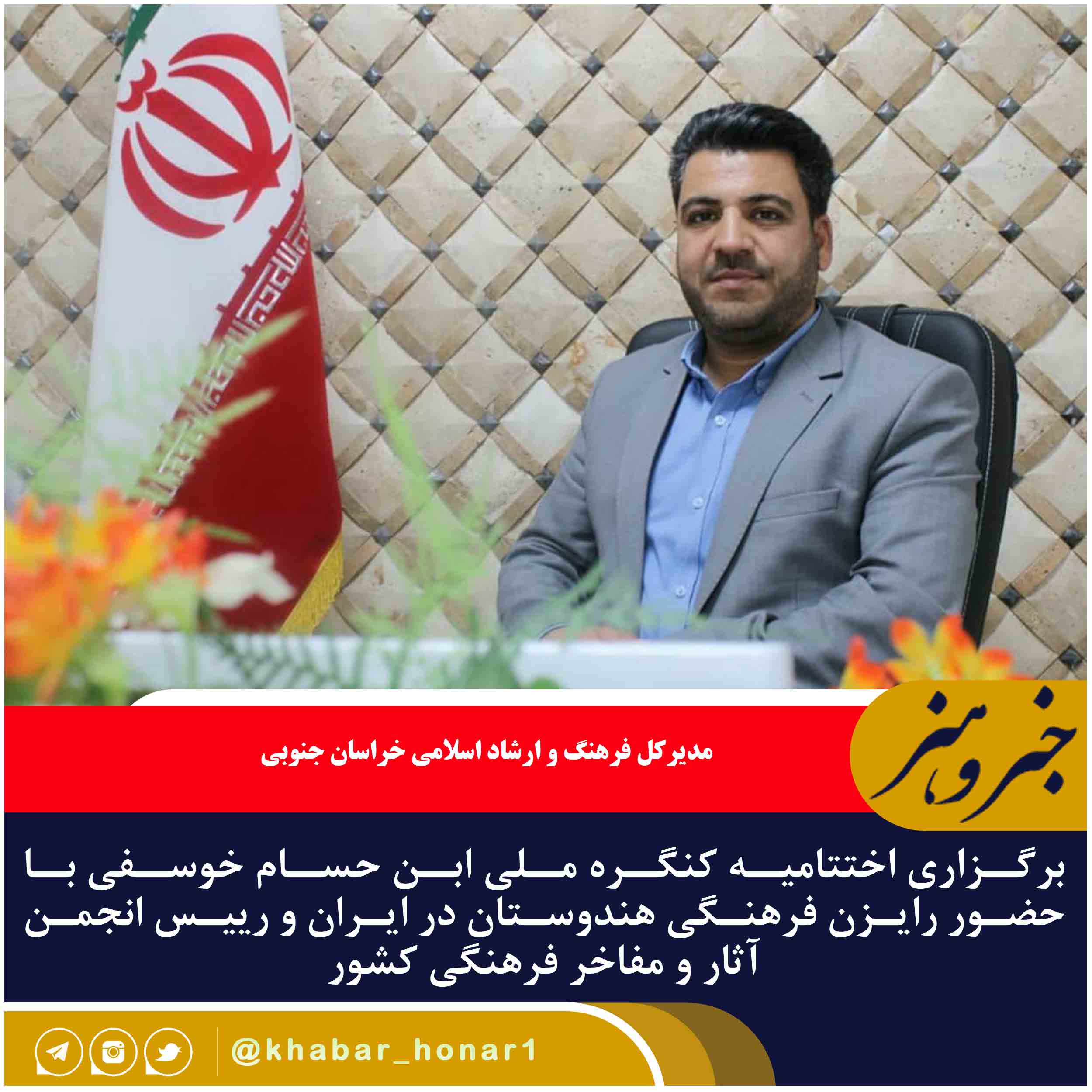 علی فرخنده گفت: با پیگیری اداره کل فرهنگ و ارشاد اسلامی استان و مشارکت استانداری و دانشگاه بیرجند و برخی دستگاه‌های فرهنگی استان اختتامیه کنگره ملی ابن حسام خوسفی به ایستگاه نهایی رسیده که این مهم با حضور رایزن فرهنگی هندوستان در ایران و رییس انجمن آثار و مفاخر فرهنگی کشور ۲۸ آبانماه برگزار می‌شود.