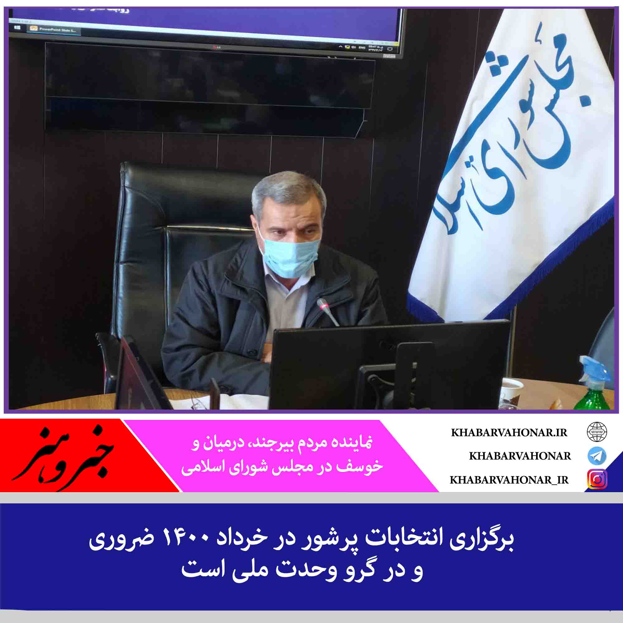 نماینده مردم بیرجند، درمیان و خوسف در مجلس شورای اسلامی گفت: با توجه به بسیج دشمنان و منافقان علیه جمهوری اسلامی، برگزاری انتخابات پرشور در خرداد ۱۴۰۰ ضروری و در گرو وحدت ملی است.