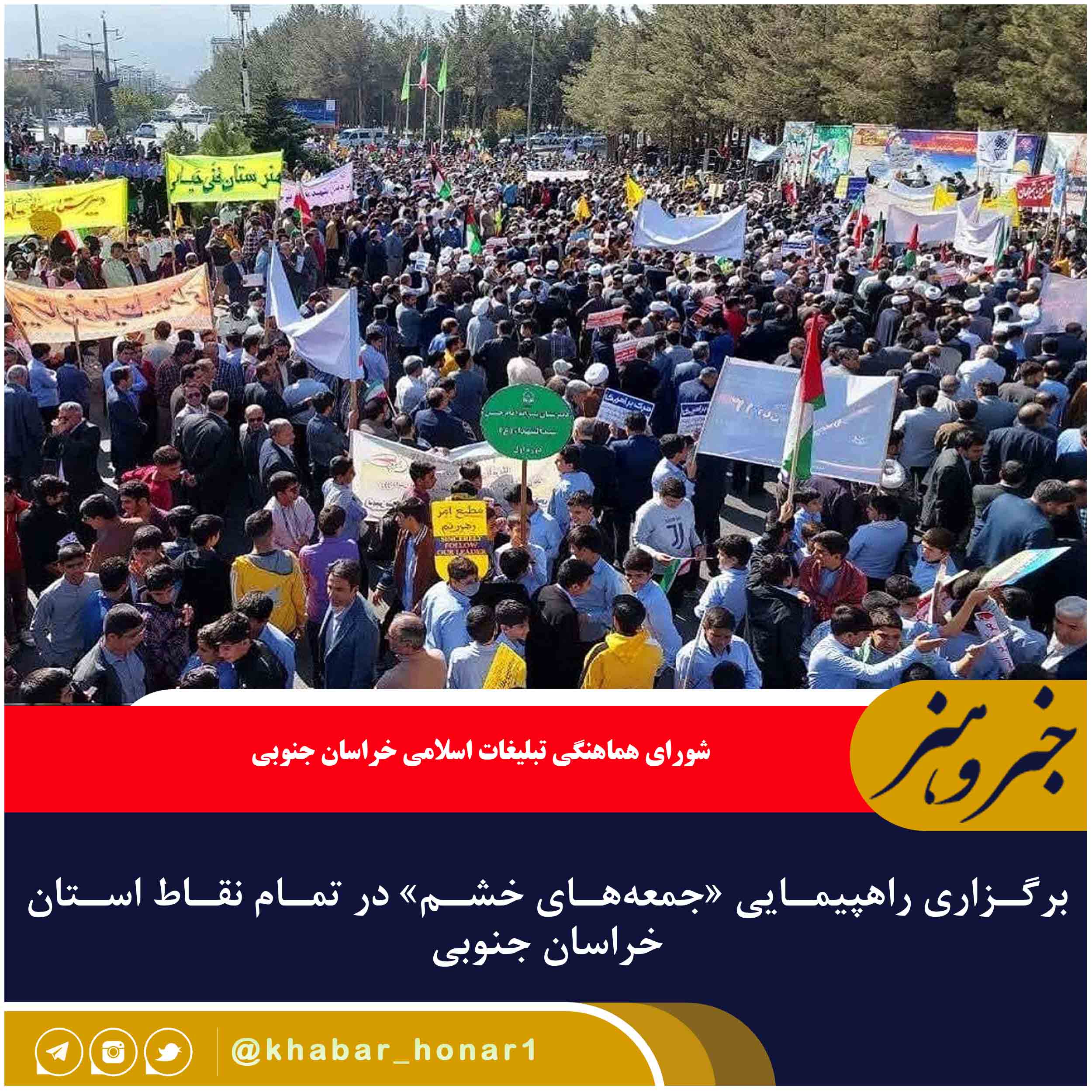 راهپیمایی «جمعههای خشم» در تمام نقاط استان خراسان جنوبی فردا بعد از نماز جمعه برگزار میشود.