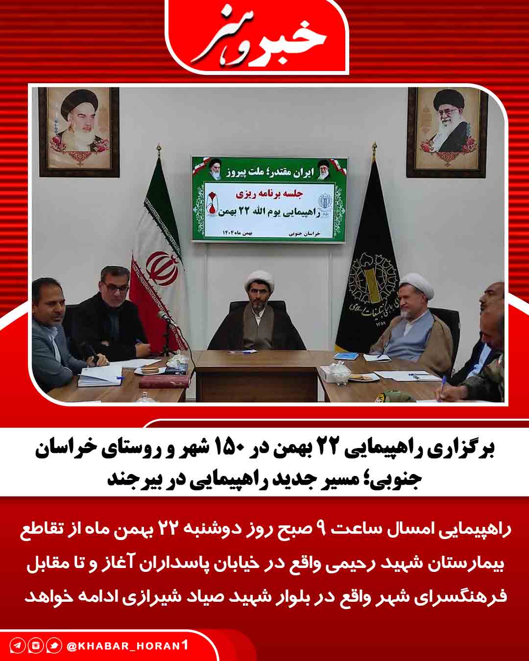 به گزارش خبر و هنر خراسان جنوبی حجت الاسلام مشرفی با بیان اینکه بخشی از مسیر راهپیمایی مرکز استان به سیستم صوتی مجهز شده است، افزود: از مردم استان دعوت میشود تا همچون گذشته، با حضور باشکوه و دشمنشکن خود در این جشن ملی و راهپیمایی حماسی، بار دیگر اقتدار ملت ایران را به نمایش بگذارند.
