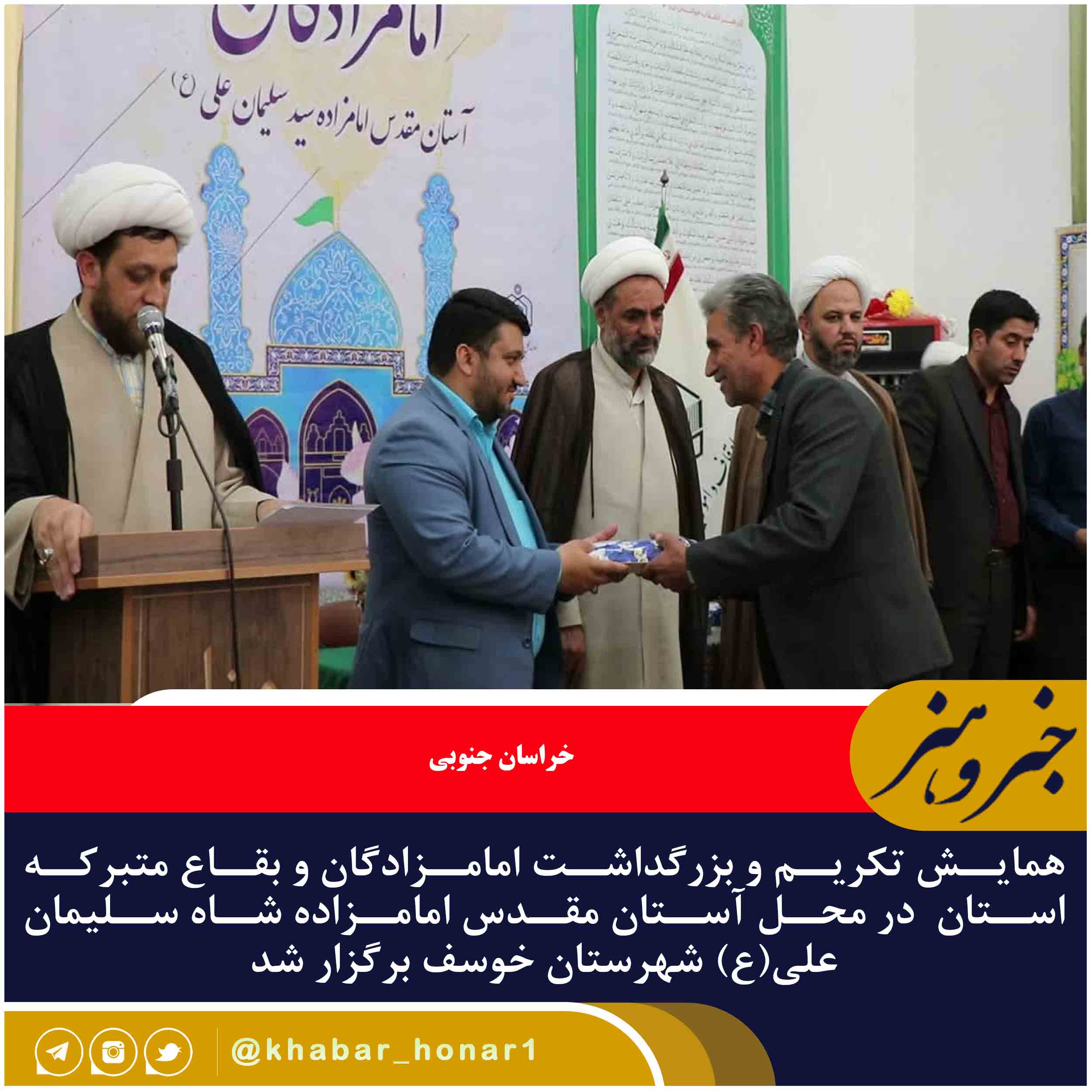?همایش تکریم و بزرگداشت امامزادگان و بقاع متبرکه استان در محل آستان مقدس امامزاده شاه سلیمان علی(ع) شهرستان خوسف برگزار شد.