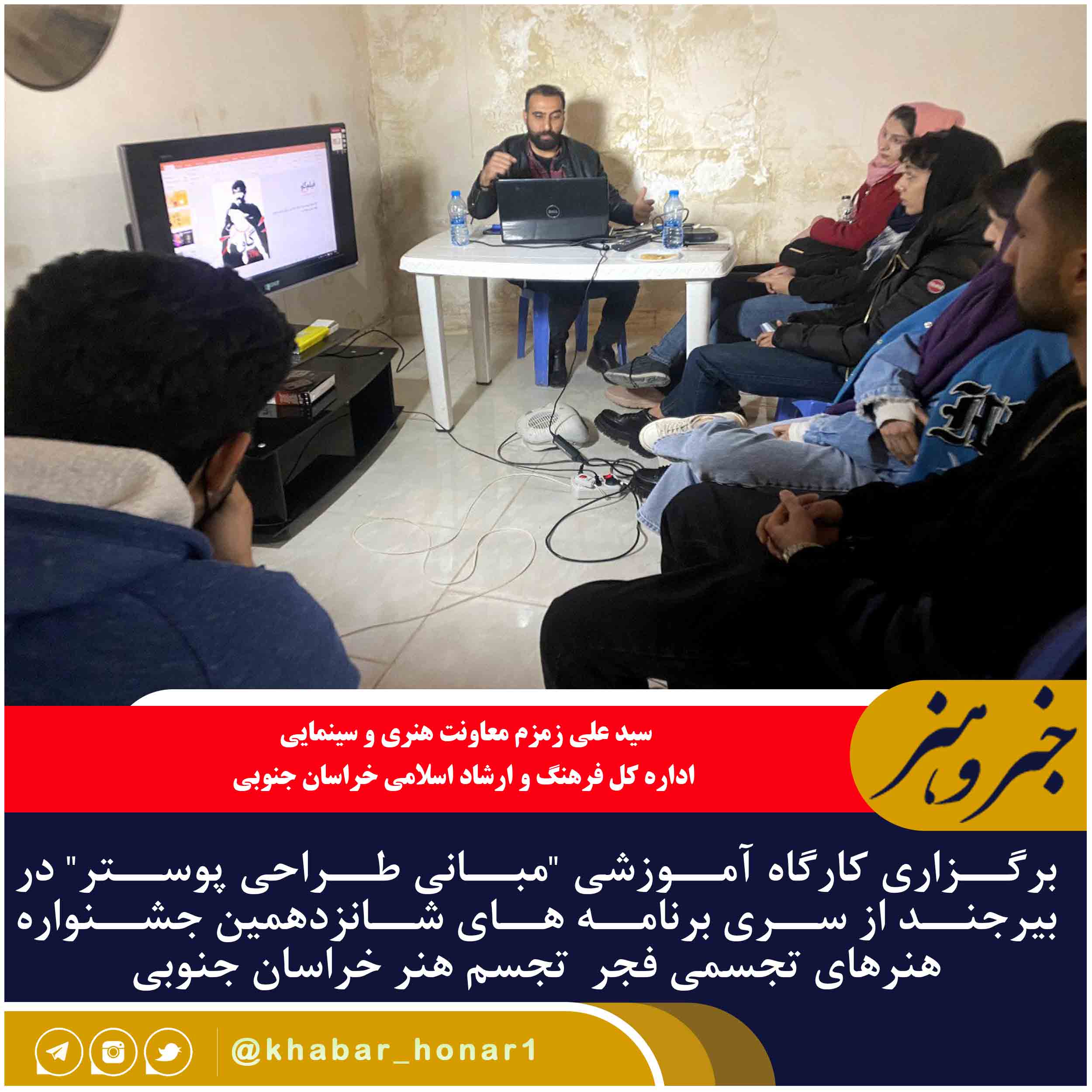 سید علی زمزم معاونت هنری و سینمایی اداره کل فرهنگ و ارشاد اسلامی خراسان جنوبی گفت برگزاری کارگاه آموزشی “مبانی طراحی پوستر” در بیرجند از سری برنامه های شانزدهمین جشنواره هنرهای تجسمی فجر تجسم هنر خراسان جنوبی ؛