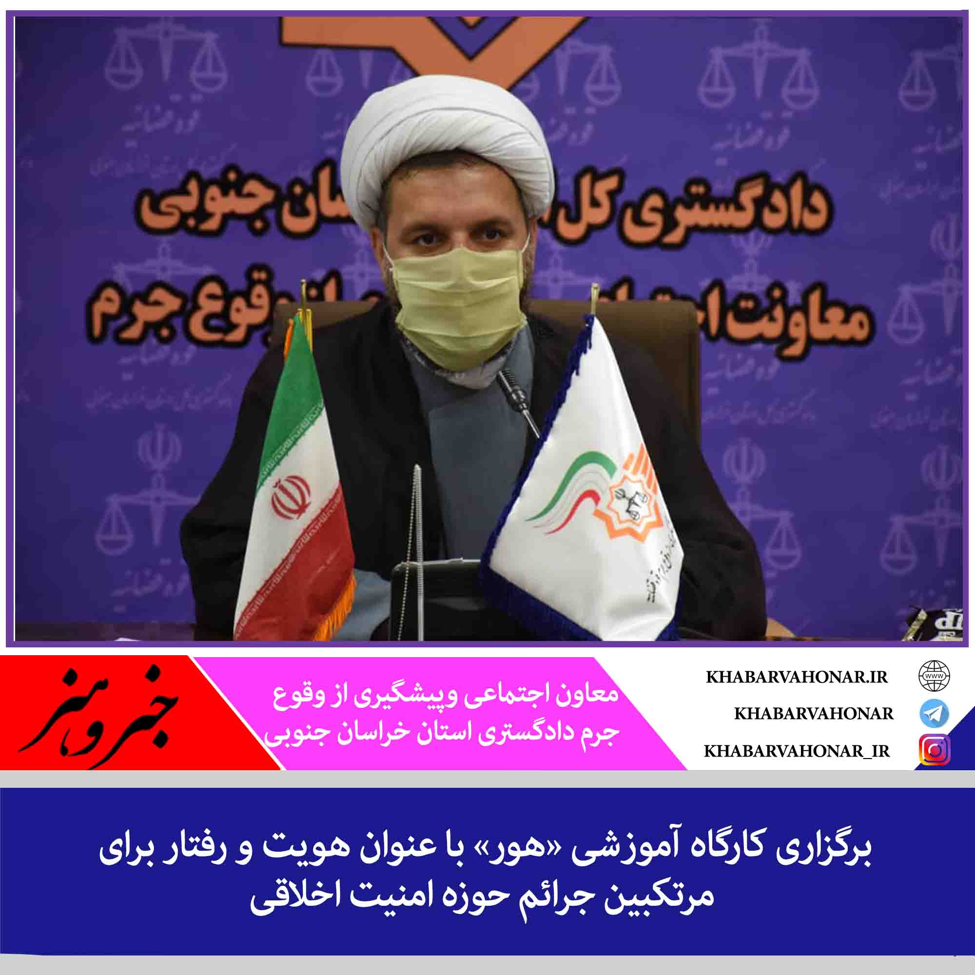 معاون اجتماعی وپیشگیری از وقوع جرم دادگستری خراسان جنوبی گفت: برگزاری کارگاه آموزشی «هور» با عنوان هویت و رفتار برای مرتکبین جرائم حوزه امنیت اخلاقی در راستای اجرای راهبرد اصلاح و بازاجتماعی کردن مجرمین می باشد. در این کارگاه آموزشی دورههای مدیریت مهارت و دانش رفتار (طرح هور) برای متهمان جرایم امنیت اخلاقی برگزار میشود.