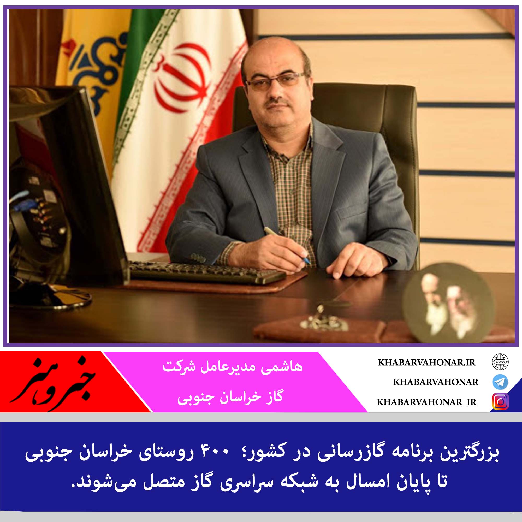 هاشمی مدیرعامل شرکت گاز خراسان جنوبی امروز گفت: اتصال «۳۹۹ + یک» روستا به شبکه گاز از برنامههای امسال شرکت گاز خراسان جنوبی است که با تلاش همه همکاران محقق خواهد شد.
