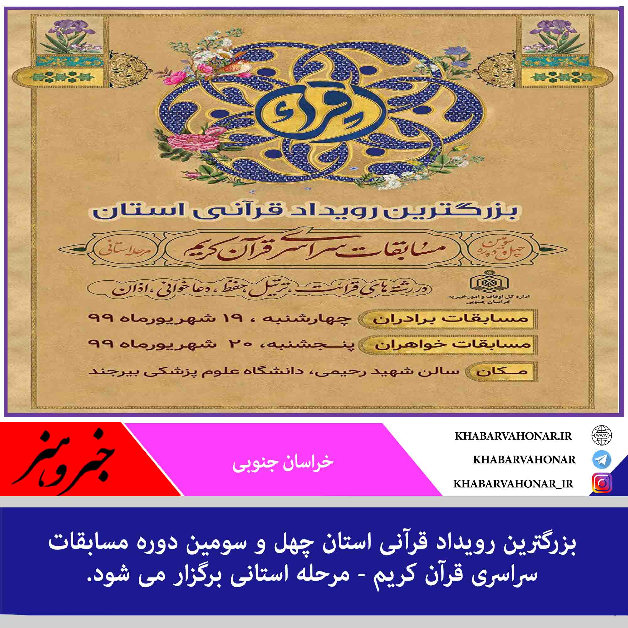 ✅ چهل و سومین دوره مسابقات سراسری قرآن کریم – مرحله استانی در خراسان جنوبی برگزار می شود.