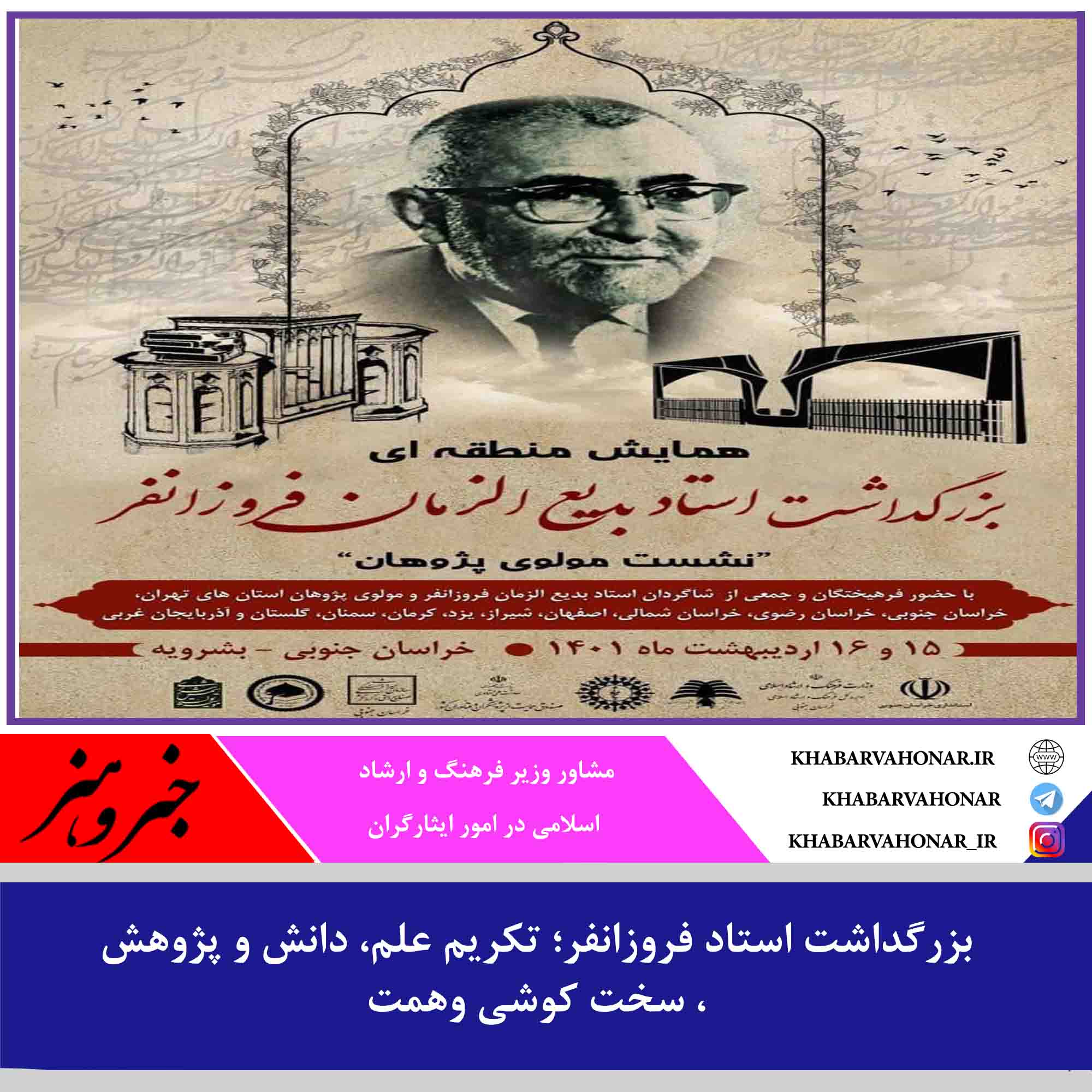 بزرگداشت استاد فروزانفر تکریم علم، دانش و پژوهش، سخت کوشی وهمت است.