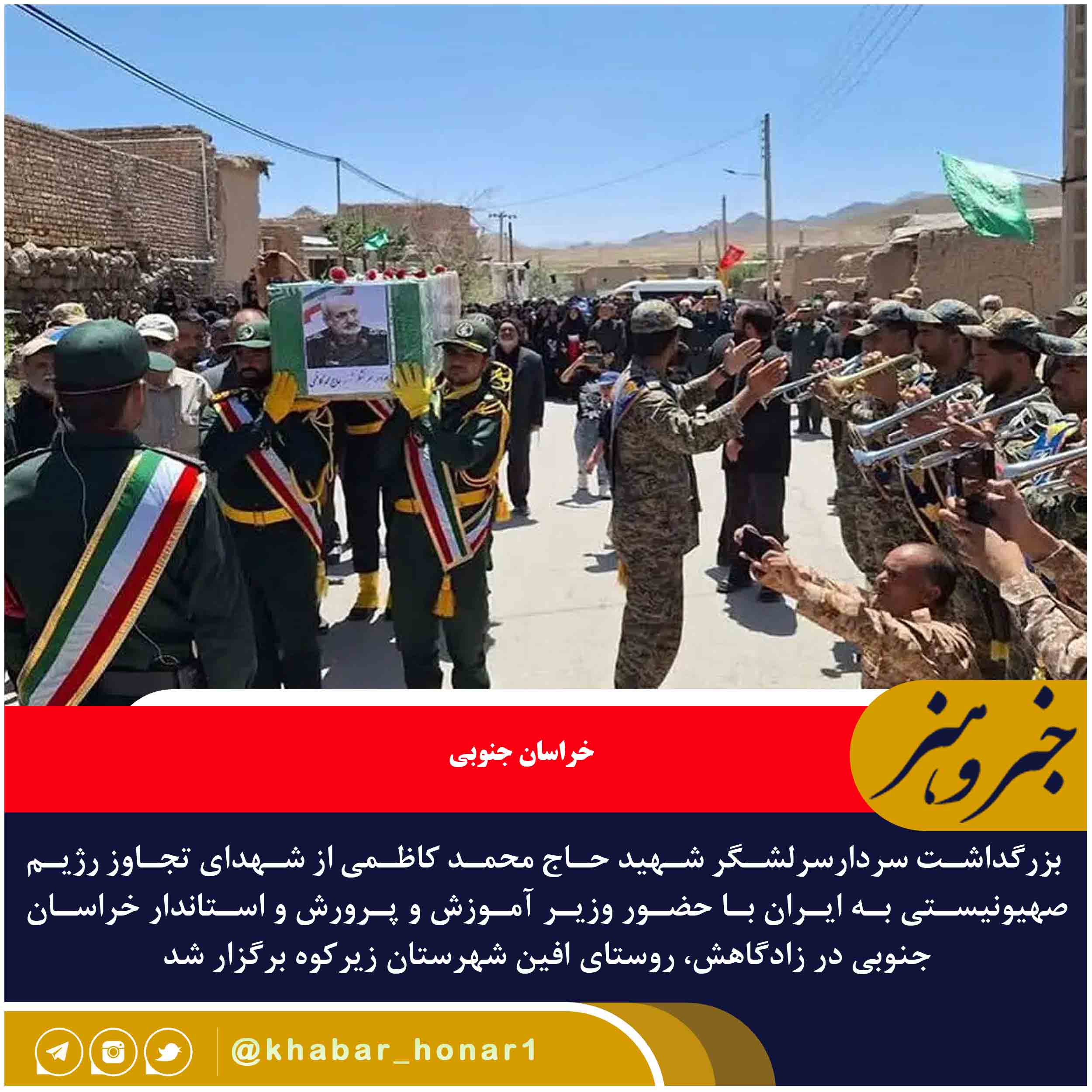 بزرگداشت سردار سرلشگر شهید حاج محمد کاظمی از شهدای تجاوز رژیم صهیونیستی به ایران با حضور وزیر آموزش و پرورش و استاندار خراسان جنوبی در زادگاهش، روستای افین شهرستان زیرکوه برگزار شد.