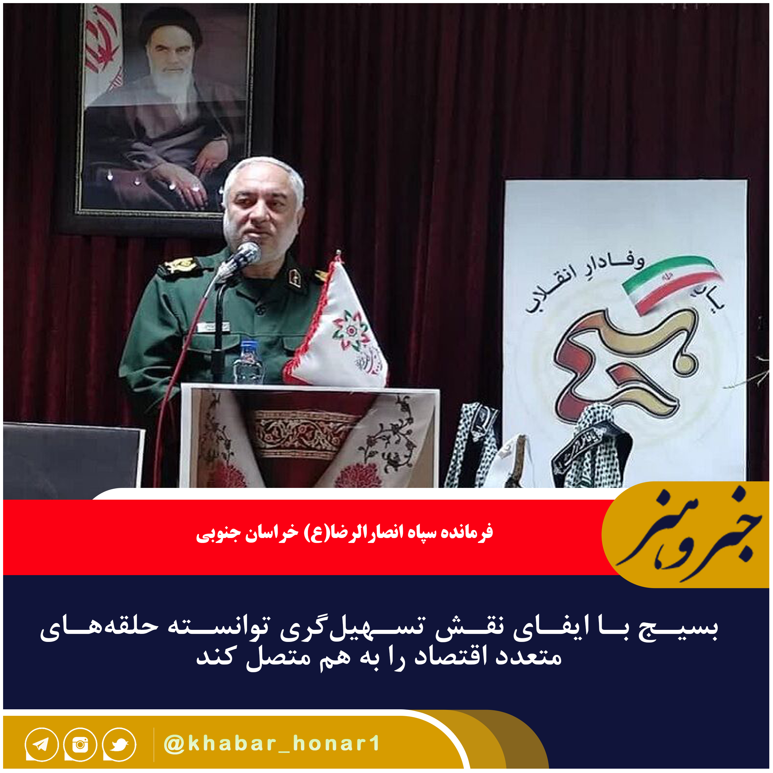 فرمانده سپاه انصارالرضا(ع) خراسان جنوبی گفت: بسیج با ایفای نقش تسهیلگری توانسته حلقههای متعدد اقتصاد را به هم متصل کند تا تولید و بازار فروش به هم وصل شوند.