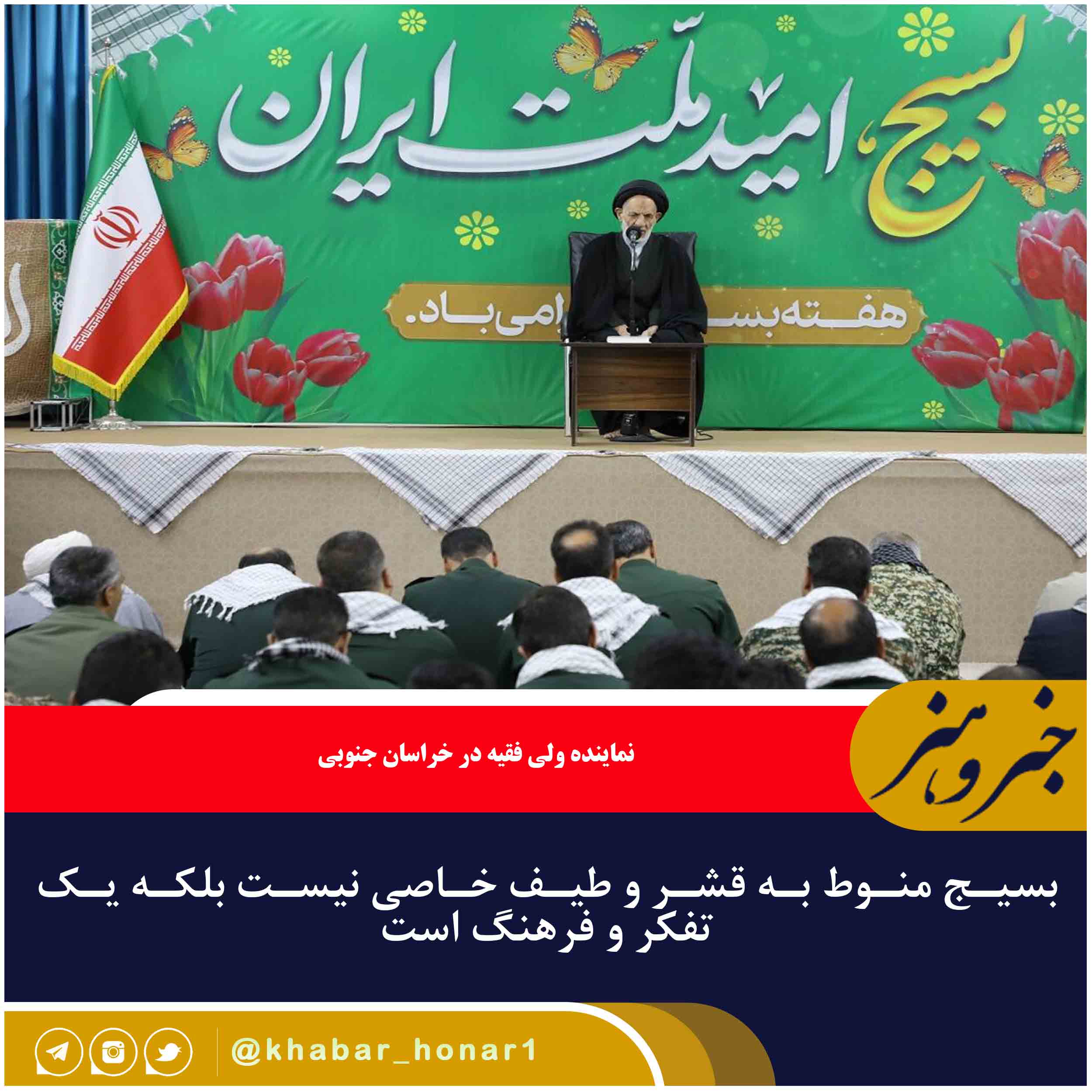 نماینده ولی فقیه در خراسان جنوبی و امام جمعه بیرجند گفت: بسیج منوط به قشر و طیف خاصی نیست بلکه یک تفکر و فرهنگ است.