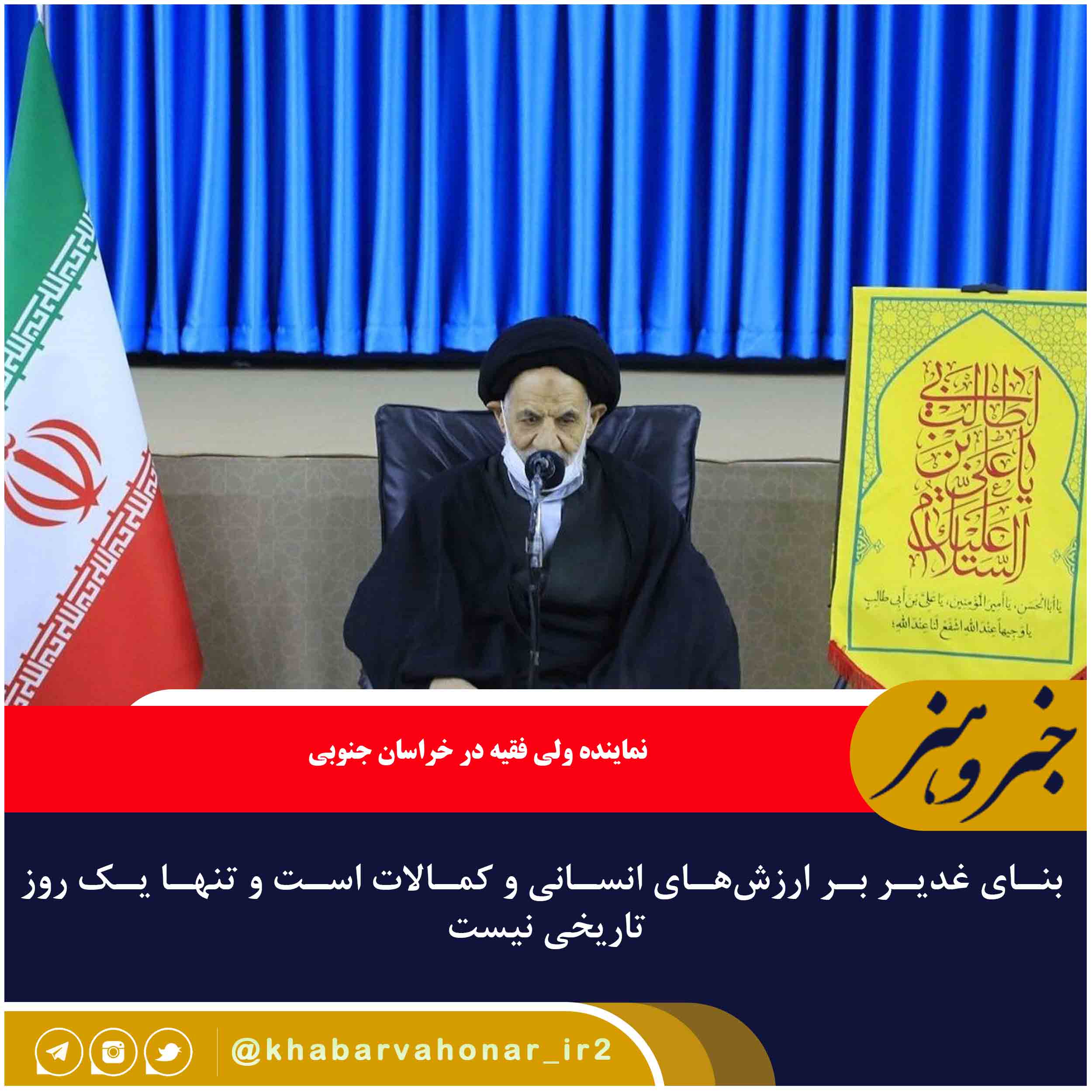 نماینده ولی فقیه در خراسان جنوبی و امام جمعه بیرجند گفت: بنای غدیر بر ارزشهای انسانی و کمالات است و تنها یک روز تاریخی نیست.