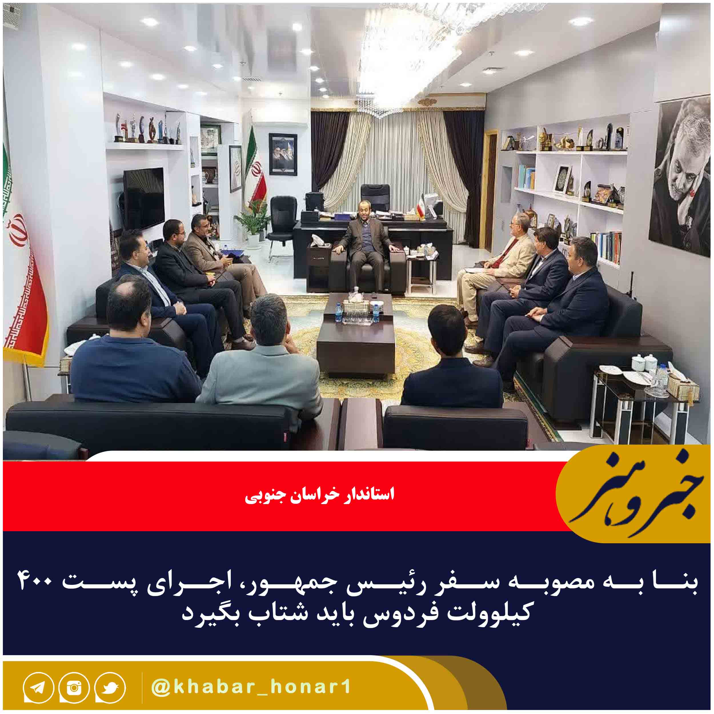 استاندار خراسان جنوبی تاکید کرد: بنا به مصوبه سفر رئیس جمهور، اجرای پست ۴۰۰ کیلوولت فردوس باید شتاب بگیرد.