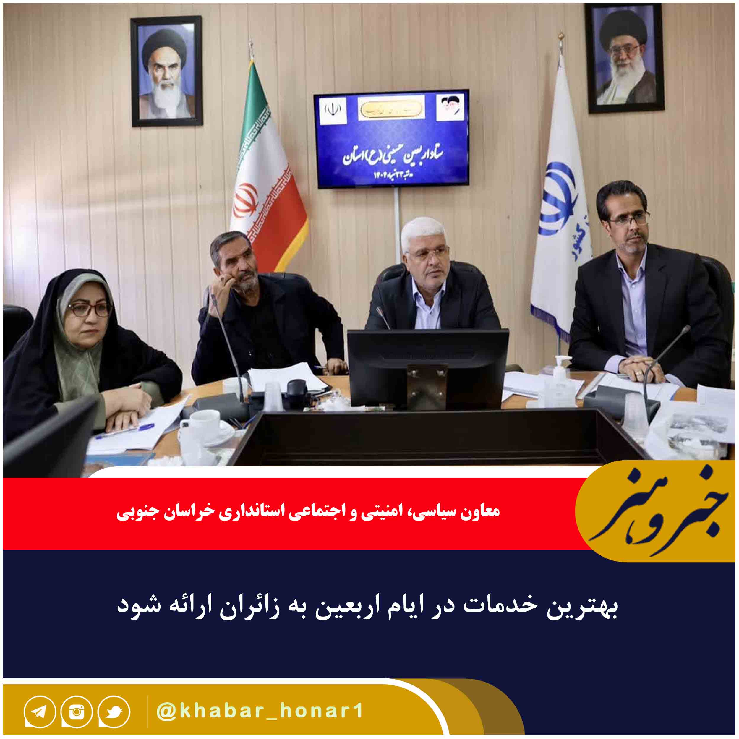 معاون سیاسی، امنیتی و اجتماعی استانداری خراسان جنوبی گفت: با برنامهریزی دقیق و تأمین همه نیازها، بهترین خدمات در ایام اربعین به زائران ارائه شود.