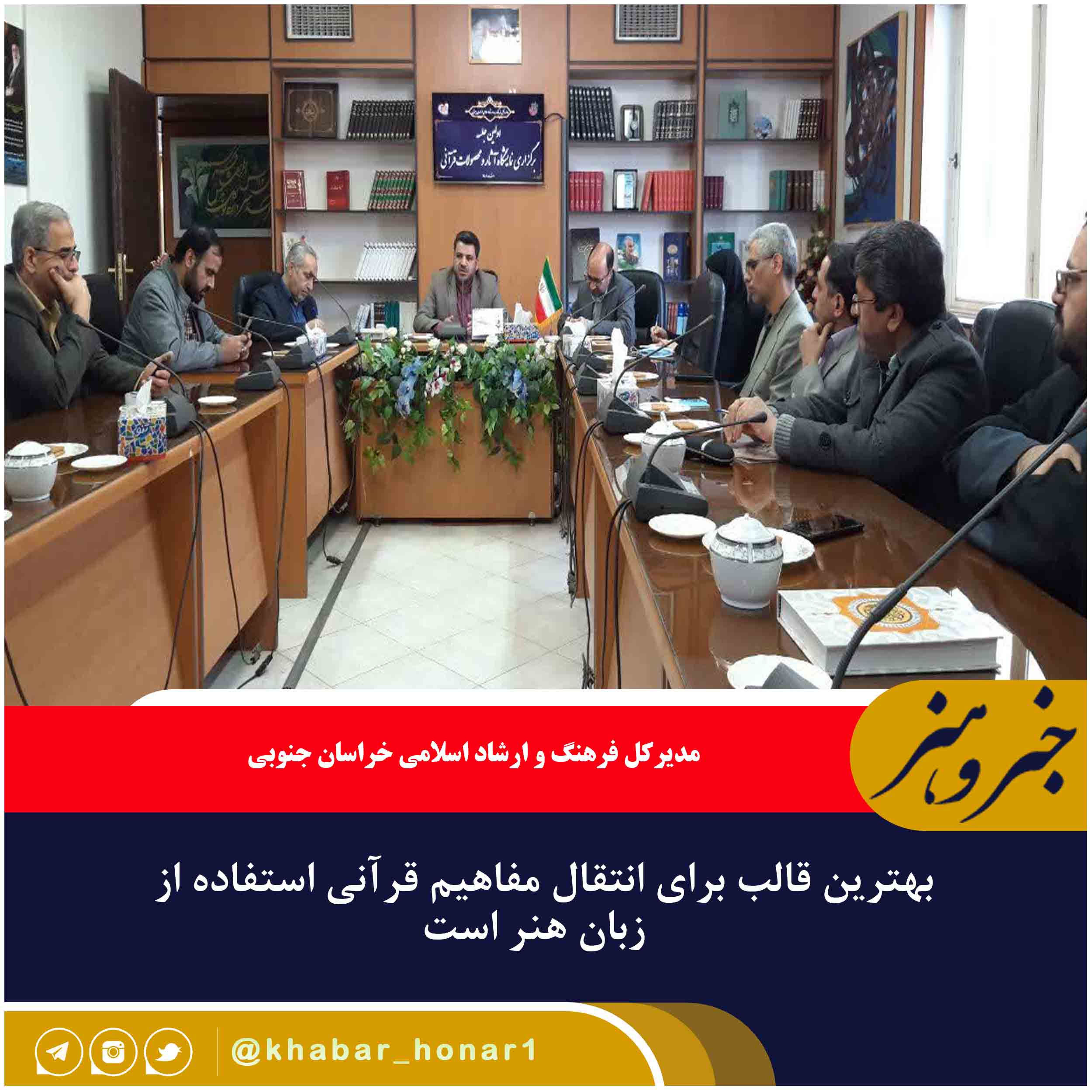 مدیرکل فرهنگ و ارشاد اسلامی خراسان جنوبی با حضور در جلسه هماهنگی در خصوص برگزاری نمایشگاه آثار و محصولات قرآنی گفت: بهترین قالب برای انتقال مفاهیم قرآنی در اینگونه نمایشگاه ها استفاده از زبان هنر است.